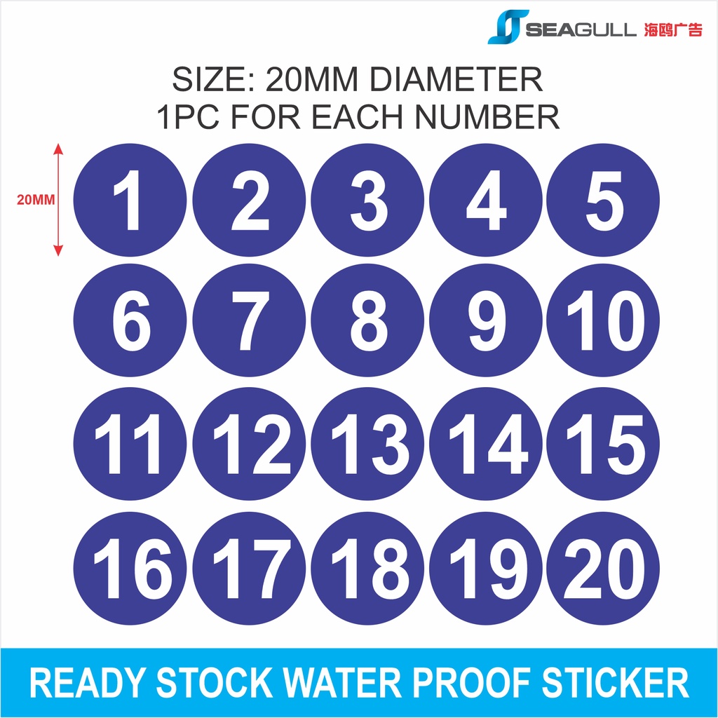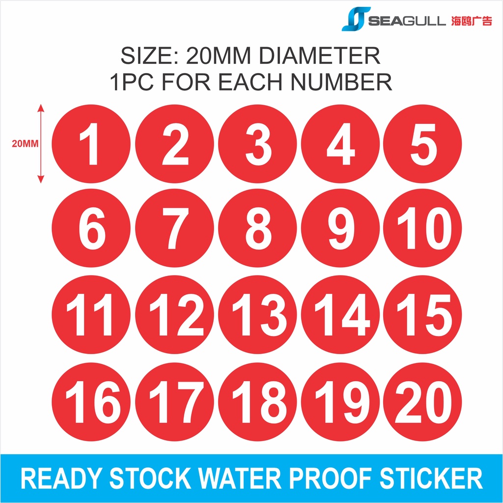 20MM Number Sticker Nombor Meja 123 2CM Sticker Nombor Table Number Pelekat Meja Label Water Proof 20mm Diameter 1-40
