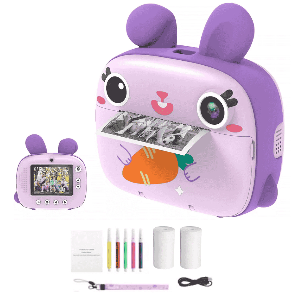 20MP Dual Camera Instant Print Digital Camera for Kids with Zero Ink Print Paper Selfie Photo Video Games Camera Rabbit