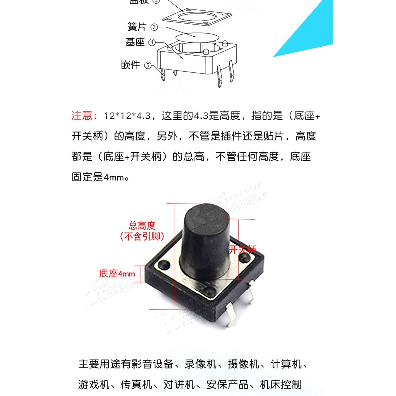 20Pcs/10Pcs 12x12mm Button Touch Switch 24Values DIP 4pin DIP4 12x12x4.3/5/6/7/8/9/10/11/12/16mm