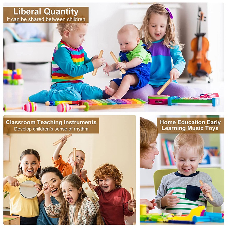 20Pieces 8 Inch Kids Rhythm Sticks Music Lummi Sticks Classical Wood Claves Musical Percussion Instrument Musical Sticks