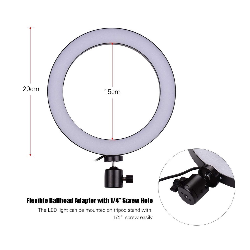 20cm/8inch Mini LED Video Ring Light Lamp 3 Lighting Modes Adjustable Brightness USB Powered with Flexible Ballhead Ada