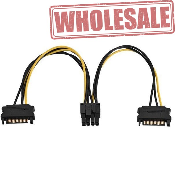 20cm Dual 15 Pin SATA Power to 8 Pin PCI-E Power Adapter