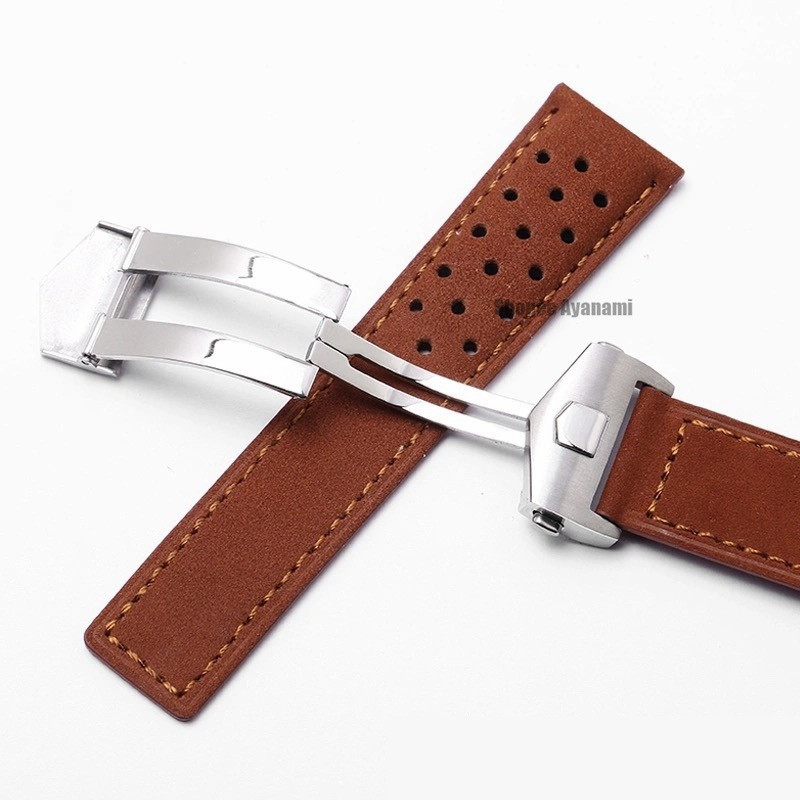 20mm 22mm 24mm Breathable Genuine Leather Watch Strap for Tag Heuer Watchband Replacement Soft Belt Bracelet with Folding Buckle