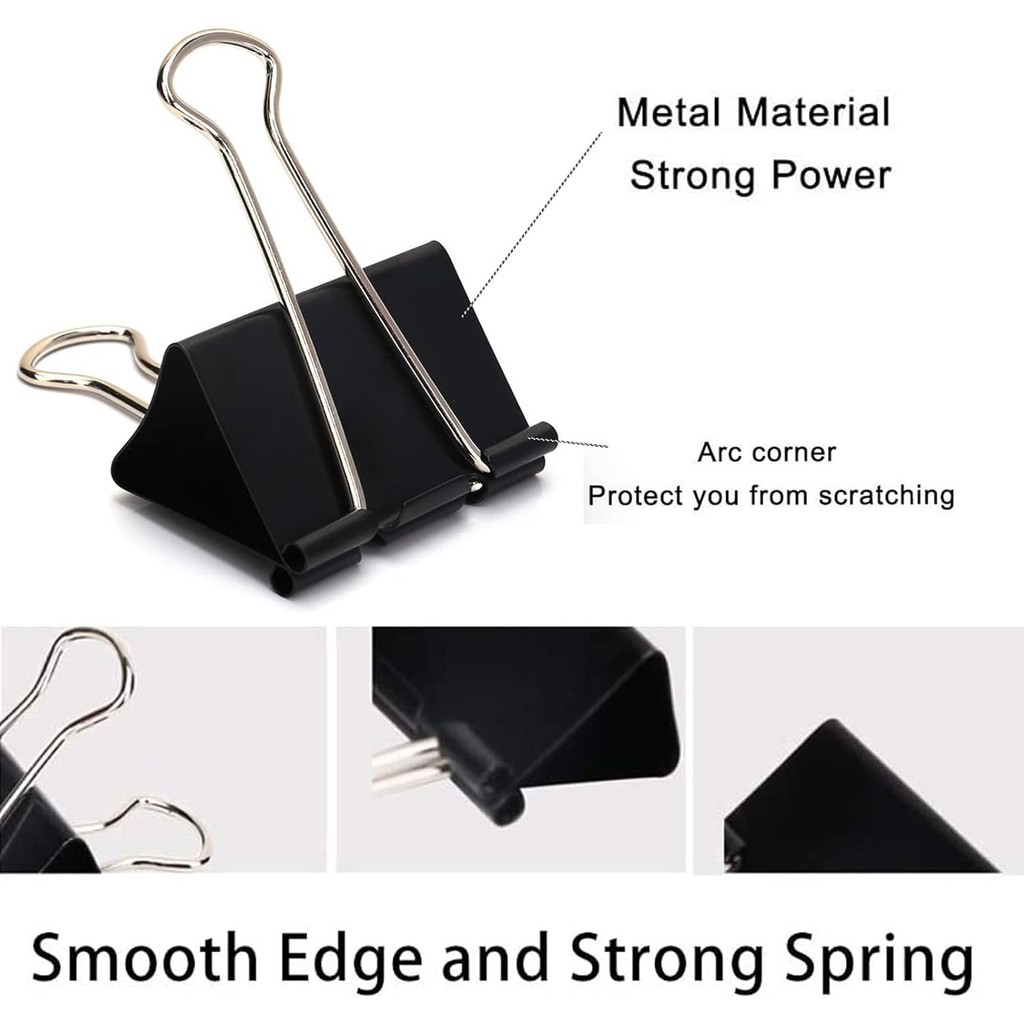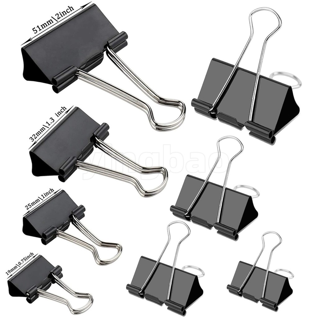 20pcs Black Binder Clamps, Paper Binder Clamps, Office Supplies, Bulk Paper Clamps for Office, Home and School Use(19/25/32/51mm)