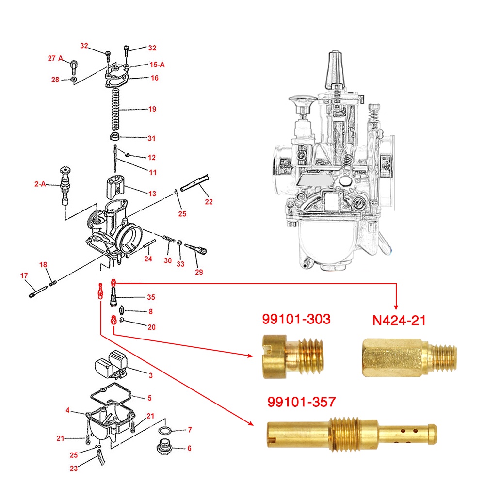 20pcs Carburetor Main/Slow Pilot Jet Set Replacement For PWK PWM PE 24 26 28 30 PJ FCR-MX CV Motorcycle Carburetor Jets
