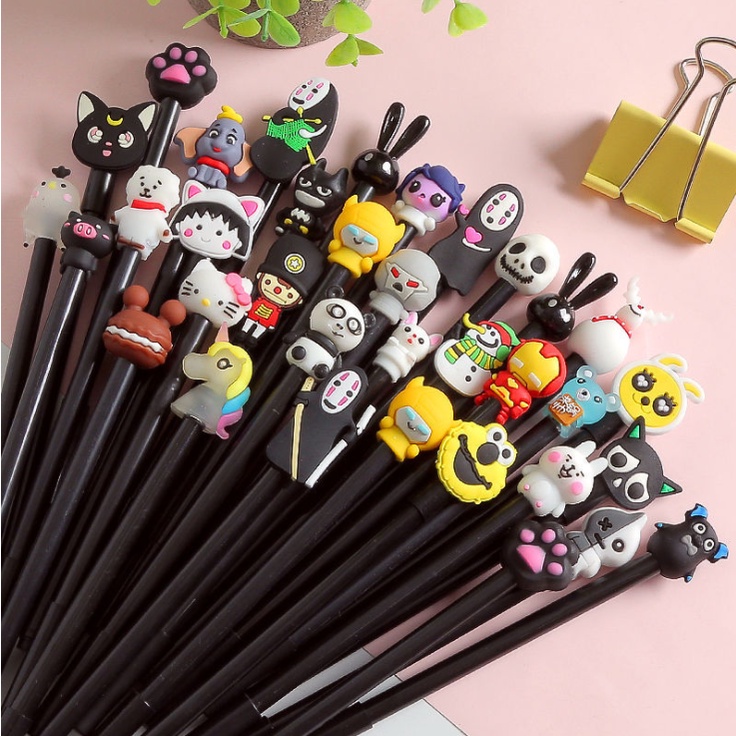 20pcs Cute Cartoon Pen stationery set cute cartoon black gel pen set plus pencil case signature pen student