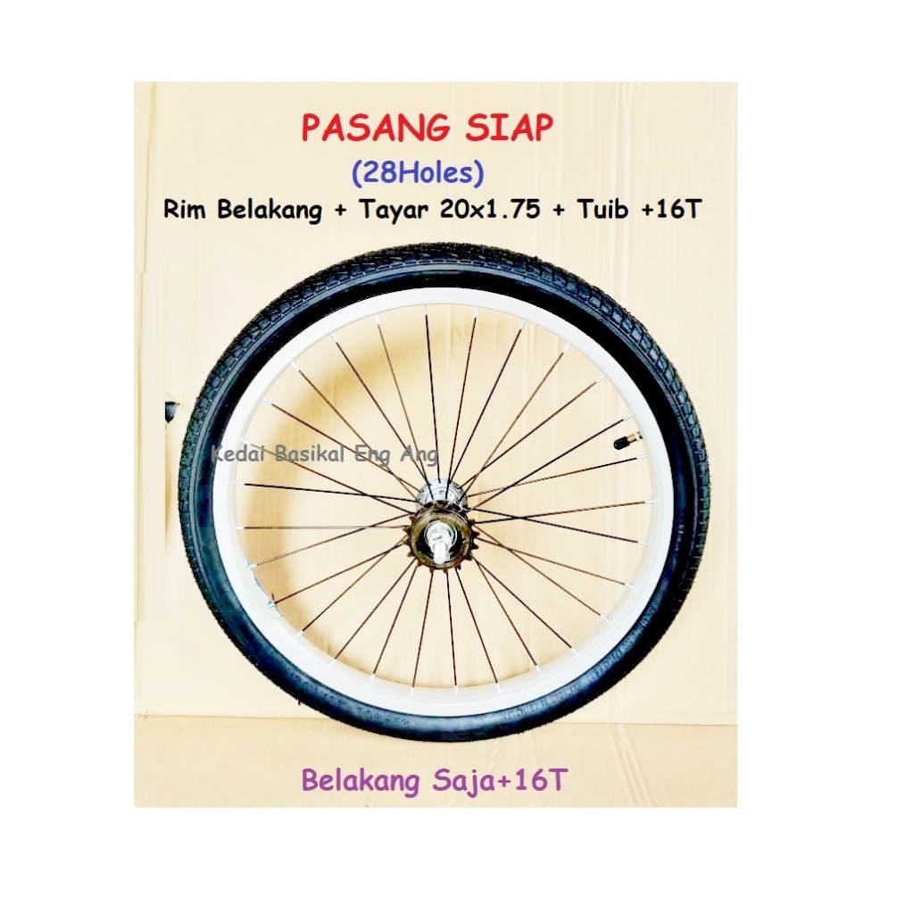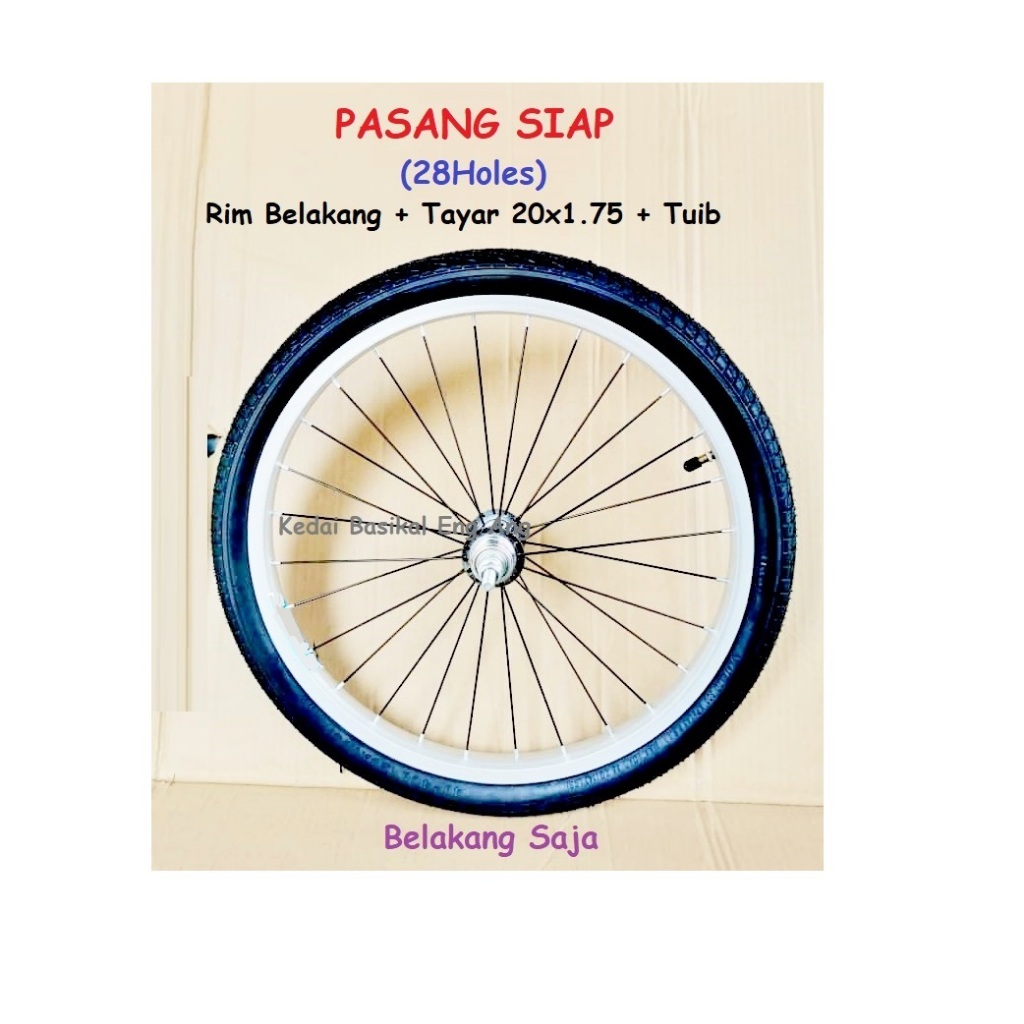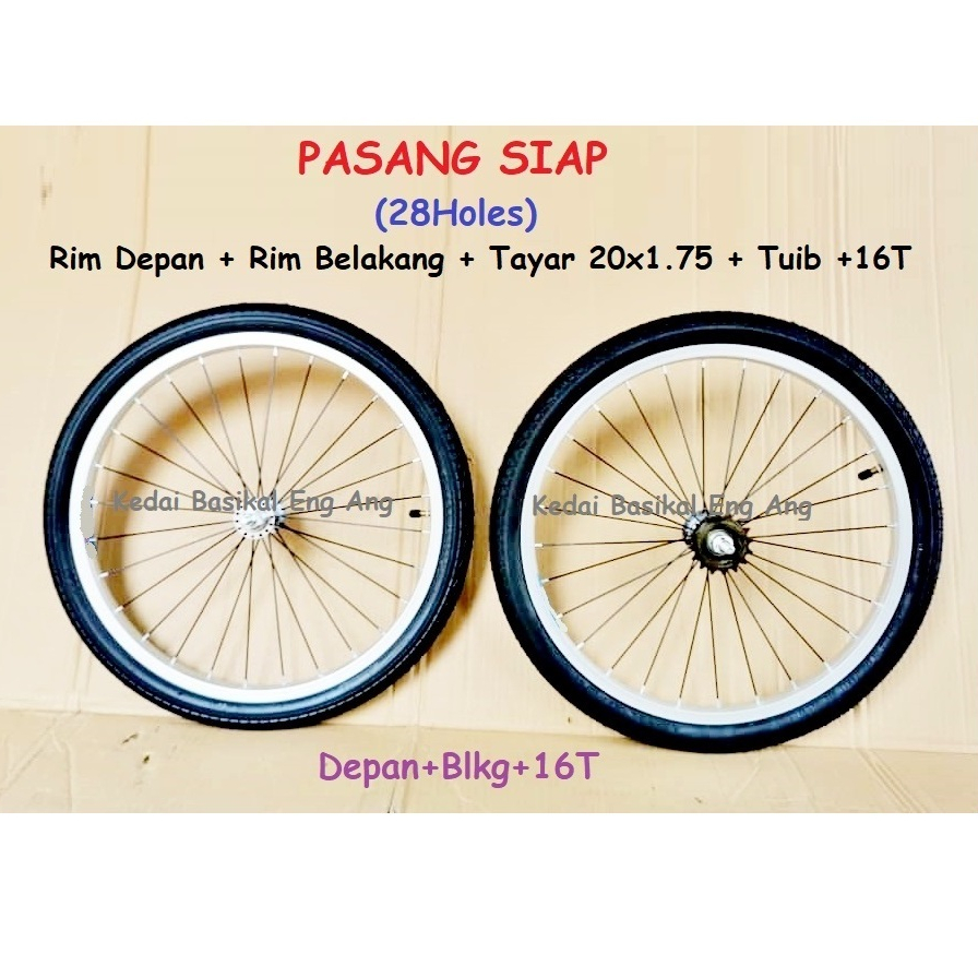 20x1.75 (28Holes ) PASANG SIAP rim - rim 20" basikal , tayar 20x1.75 dan tuib . Terus pasang kat tayar basikal