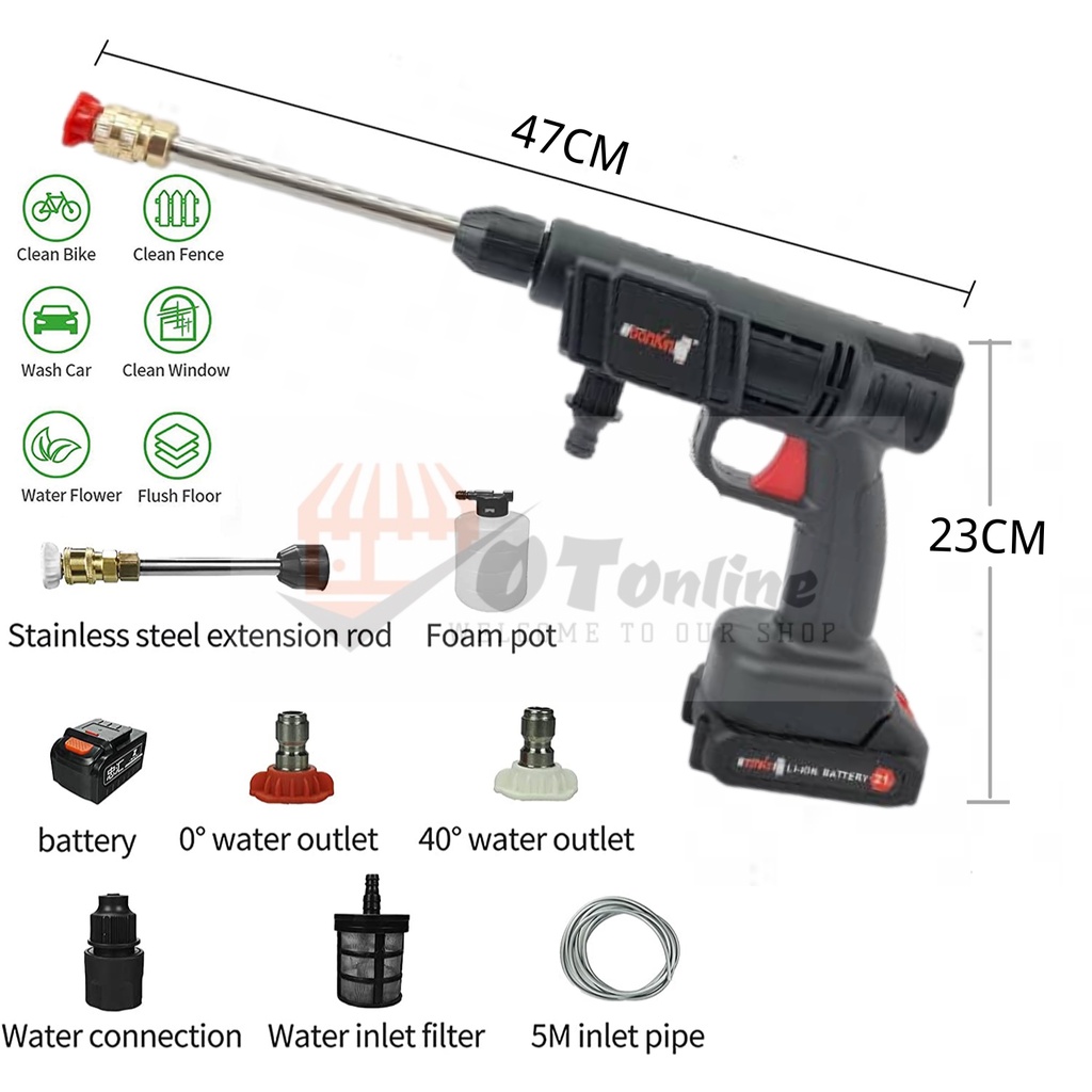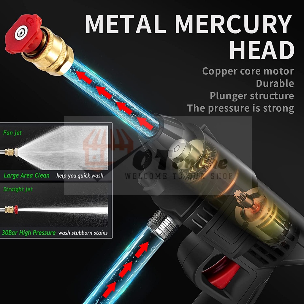 21V Water Jet High Pressure Water Jet Cleaner Gun Mesin Cuci Kereta Cordless Portable Washer Handheld Sprayer Car Wash