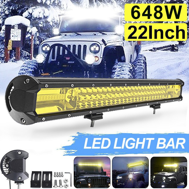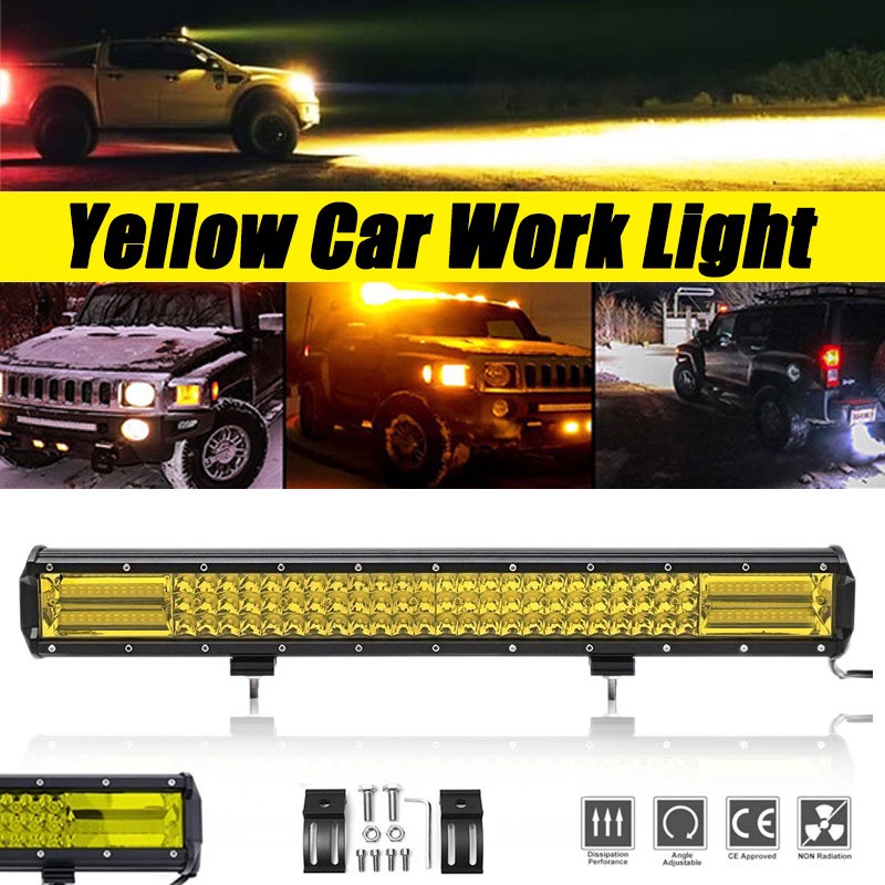 22 Inch Yellow LED 4x4 Off Road Light Bar Combo Beam Amber Work Light Fog Lights for 4WD Truck SUV ATV Trailer