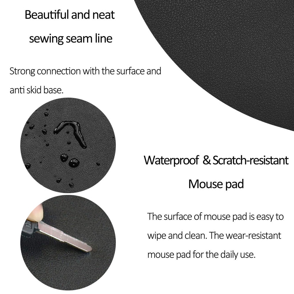 22X22CM Anti-Slip Mat Mouse Pad Simple PU Portable Waterproof Durable Round Office Home Desktop Gaming Mouse Pad