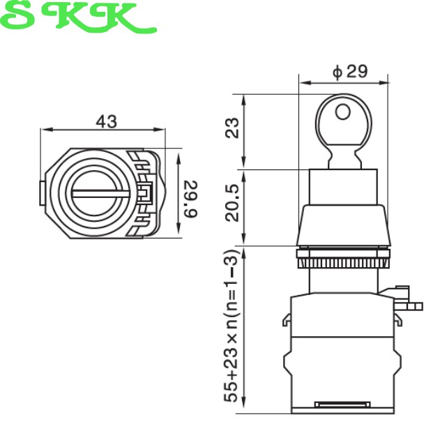 22mm LA38 2 Position On/Off Round Key Switch Button (1NO 1NC)