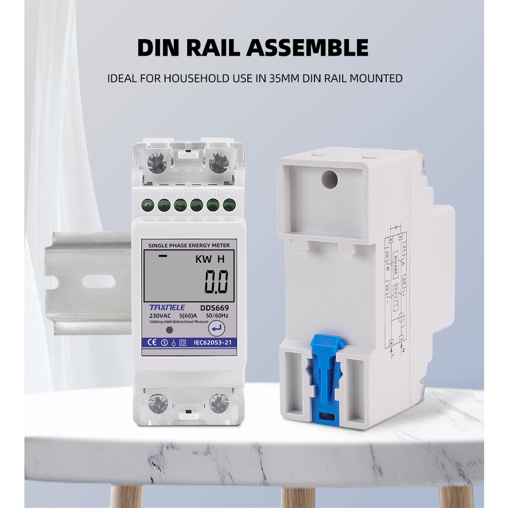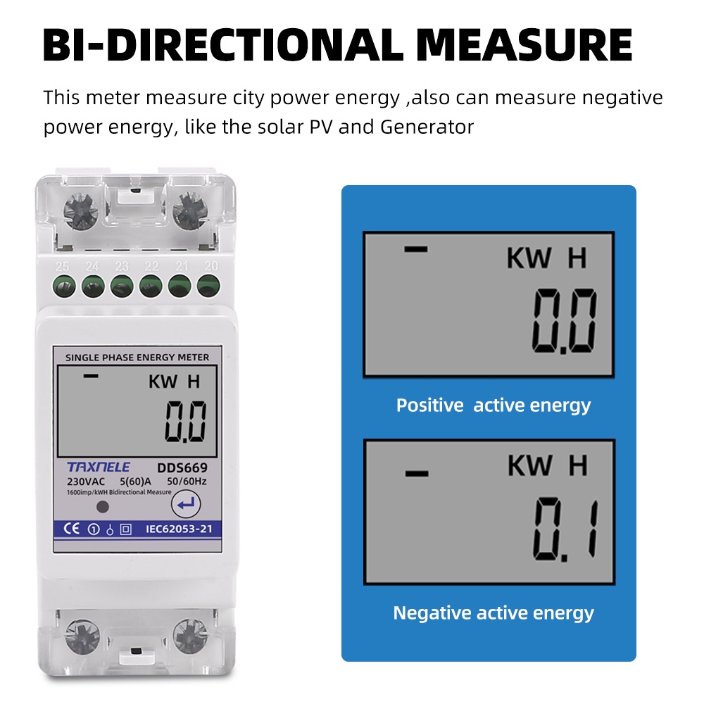 230V 60A Multifunction Bi directional Energy Meter Import Export KWH Solar PV Power Voltage Current Frequency R485 Communication