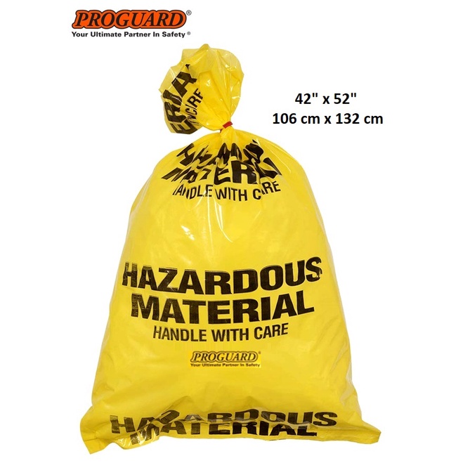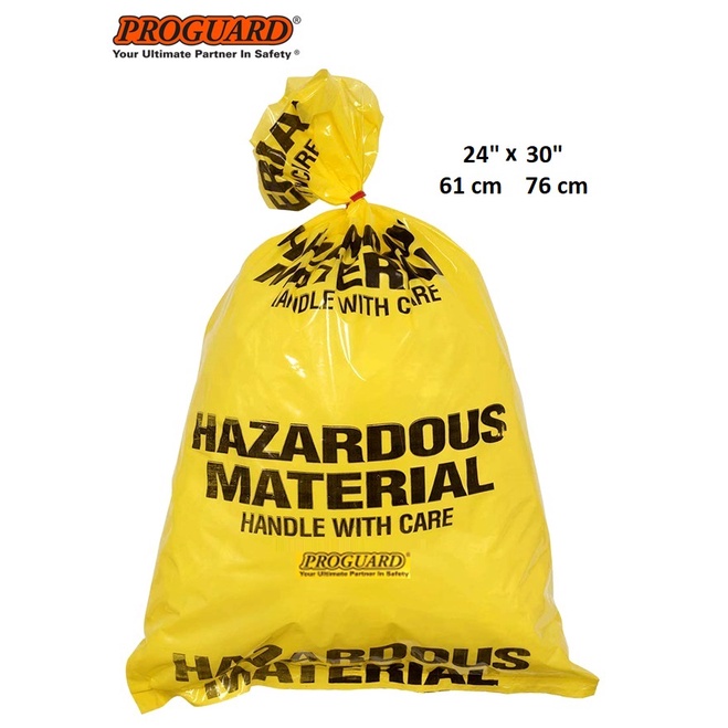 24 Pieces 120L Bio Hazardous Disposal Waste Garbage Yellow Plastic Bags c/w Cable Ties Hazard Bag HMDB-2430 PROGUARD