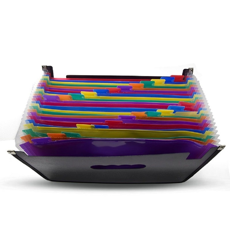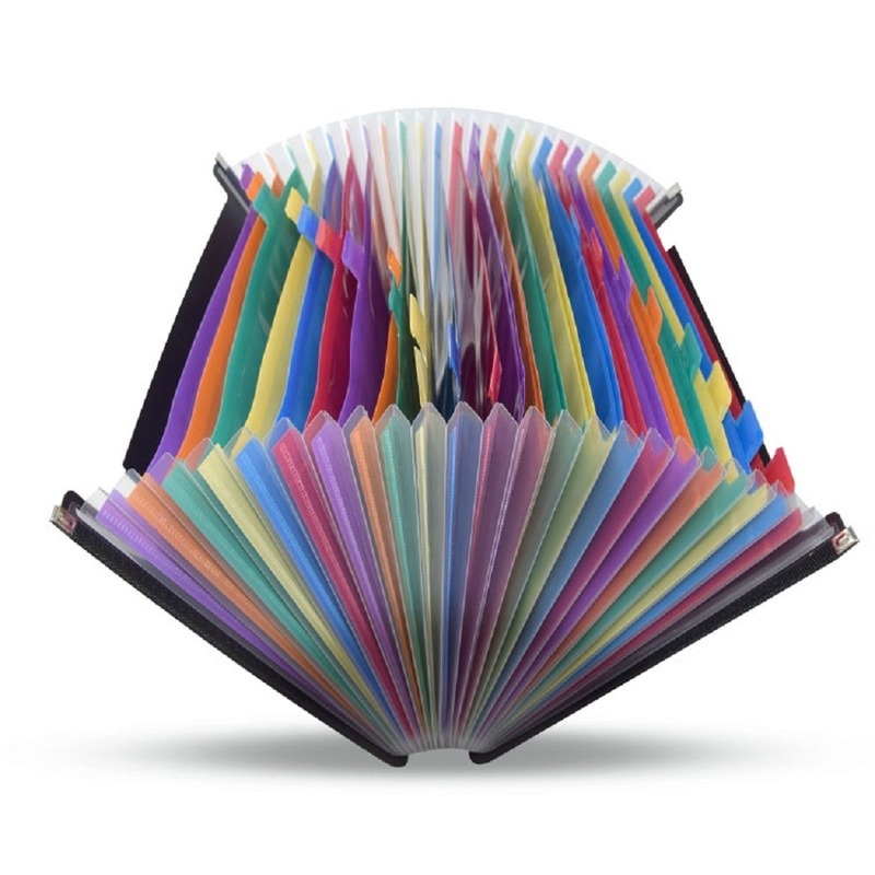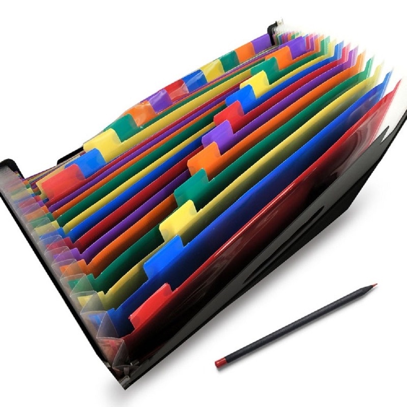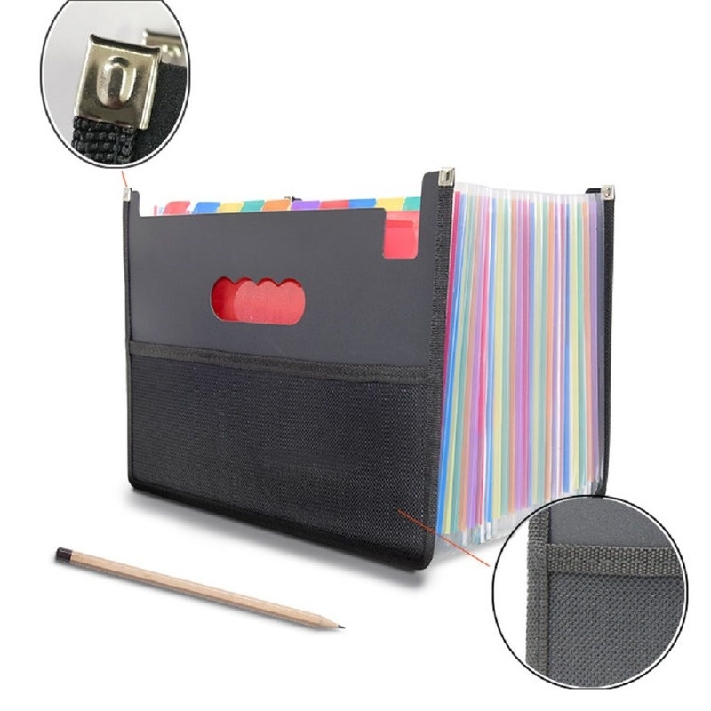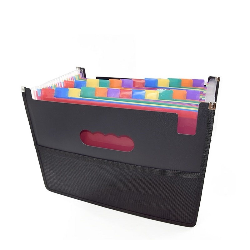 24 Pockets Document Organizer Expanding File Folder Filing Box with Unique Mesh Bag Design Plastic Expandable File Organizer