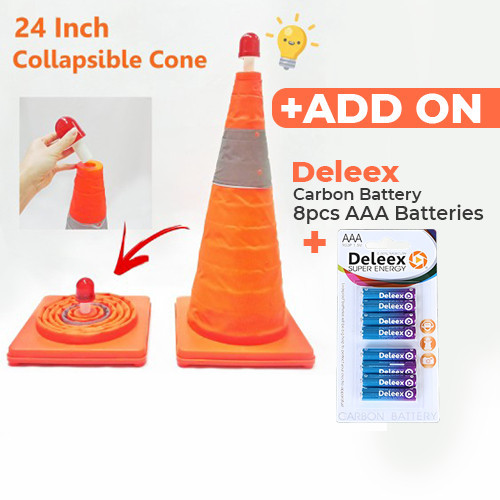24Inch Foldable Safety Security Traffic Cone with Warning Light Telescopic Foldable Road Cone Orange Reflective Tape