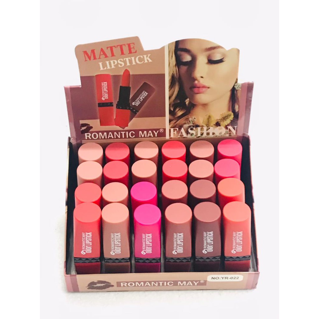 24PCS MATTE LIPSTICK , LIPMATTE ,ROMANTIC MAY MATE LIPSTICK 1 BOX 24PCS