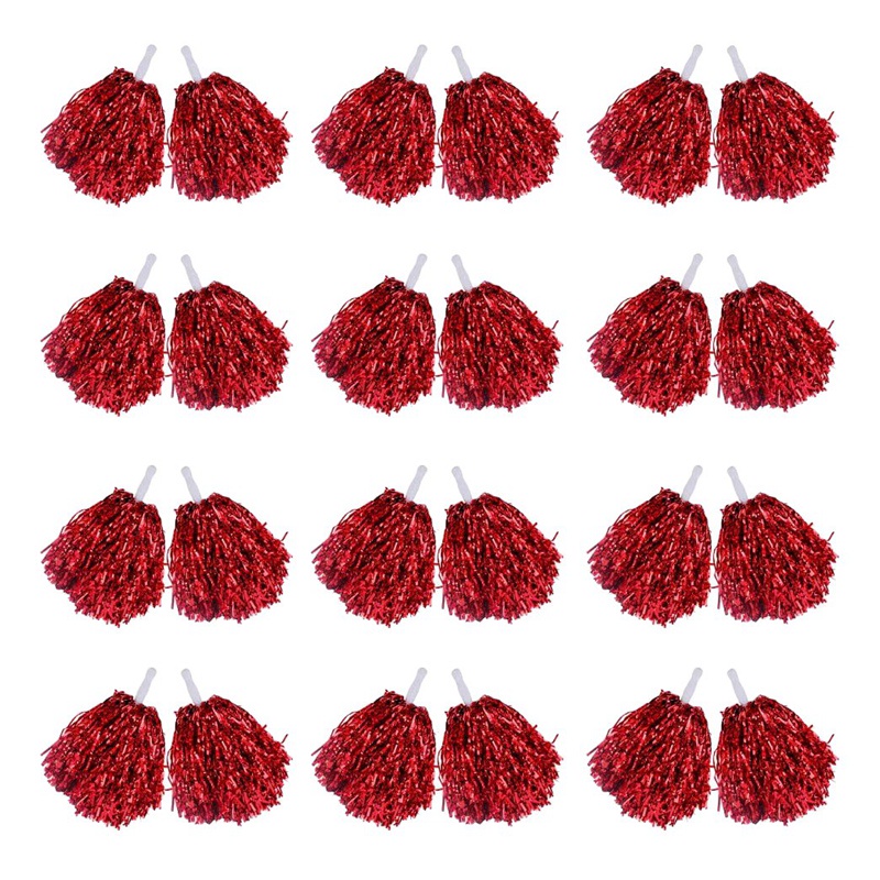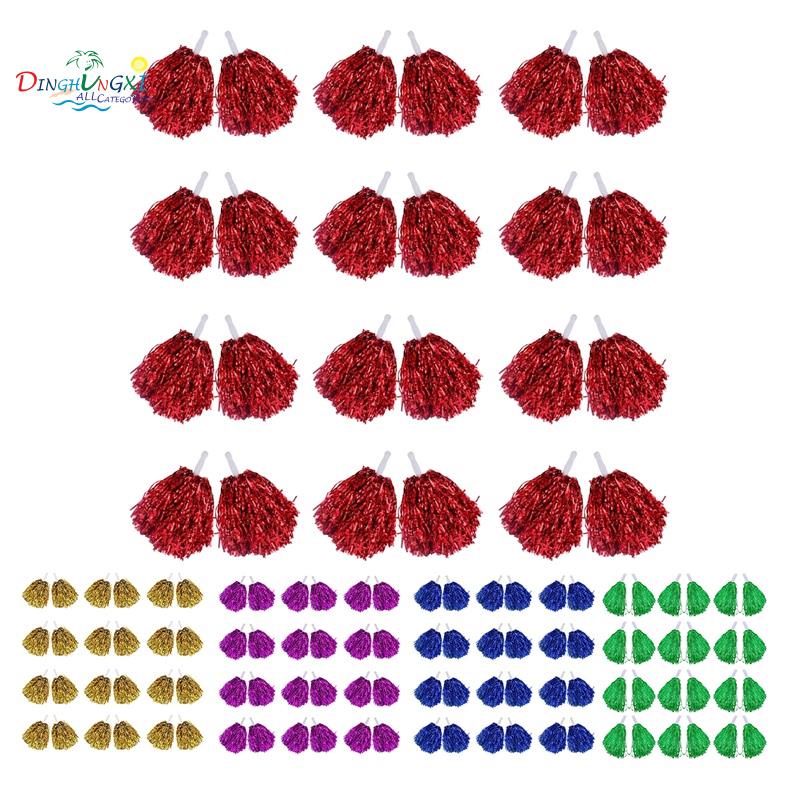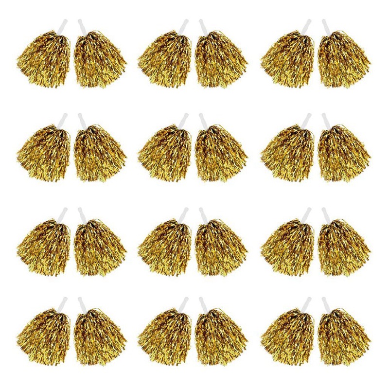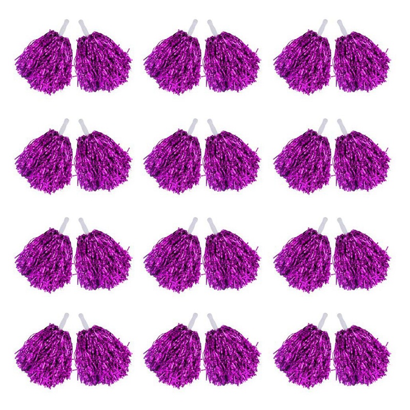 24Pcs Cheerleading Pom Poms Metallic Foil Cheer Pom Poms with Plastic Handle for Adults Kids Cheerleaders Party
