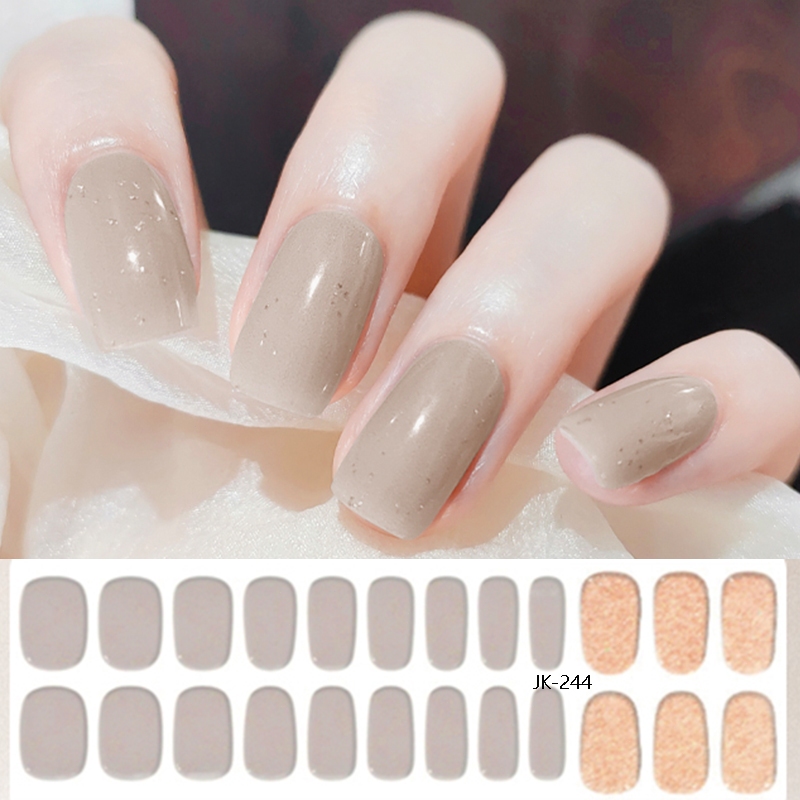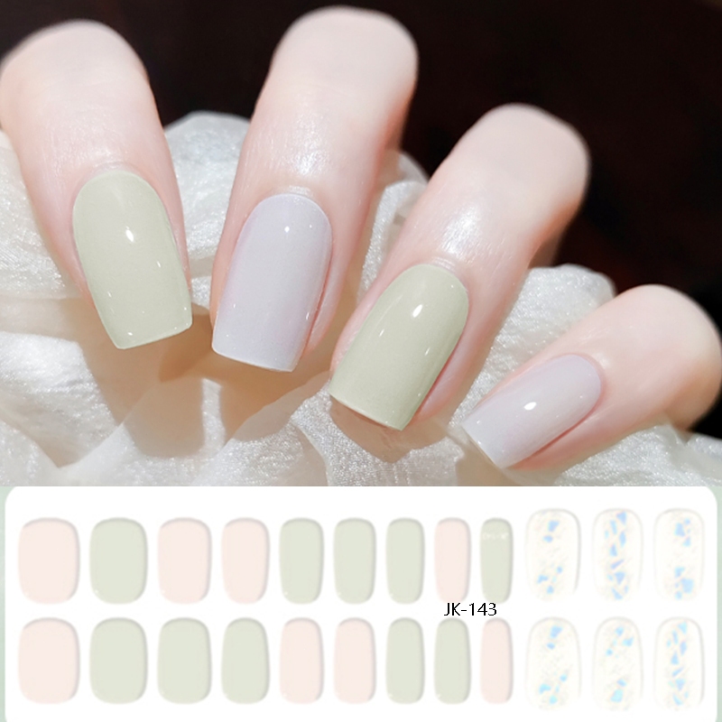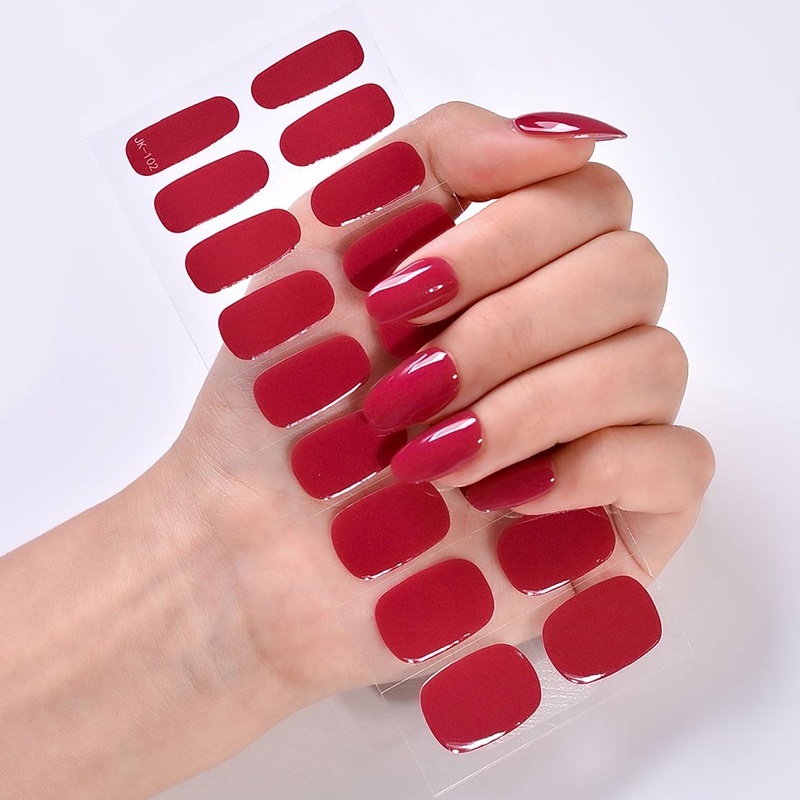 24Pcs Korea Semi-cure Gel Nail Stickers Solid Color Phototherapy Gel Nail Strips Red White Black Nude DIY Manicure Nail Art Decoration