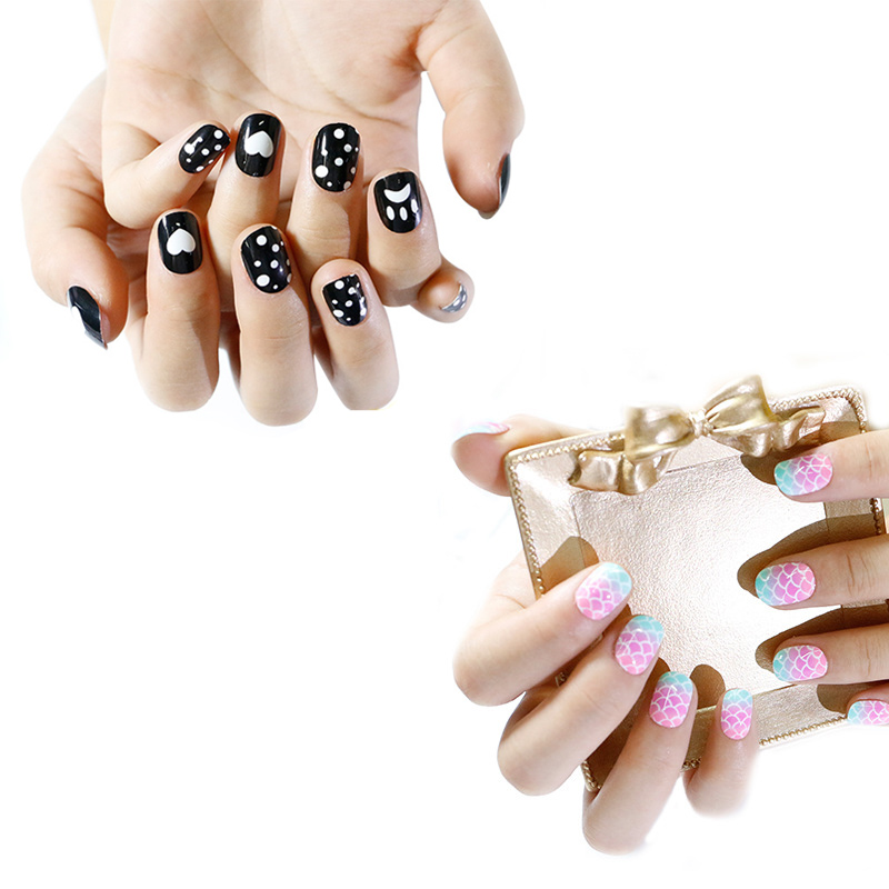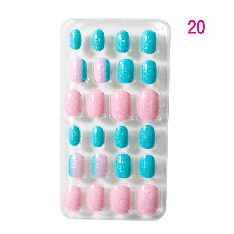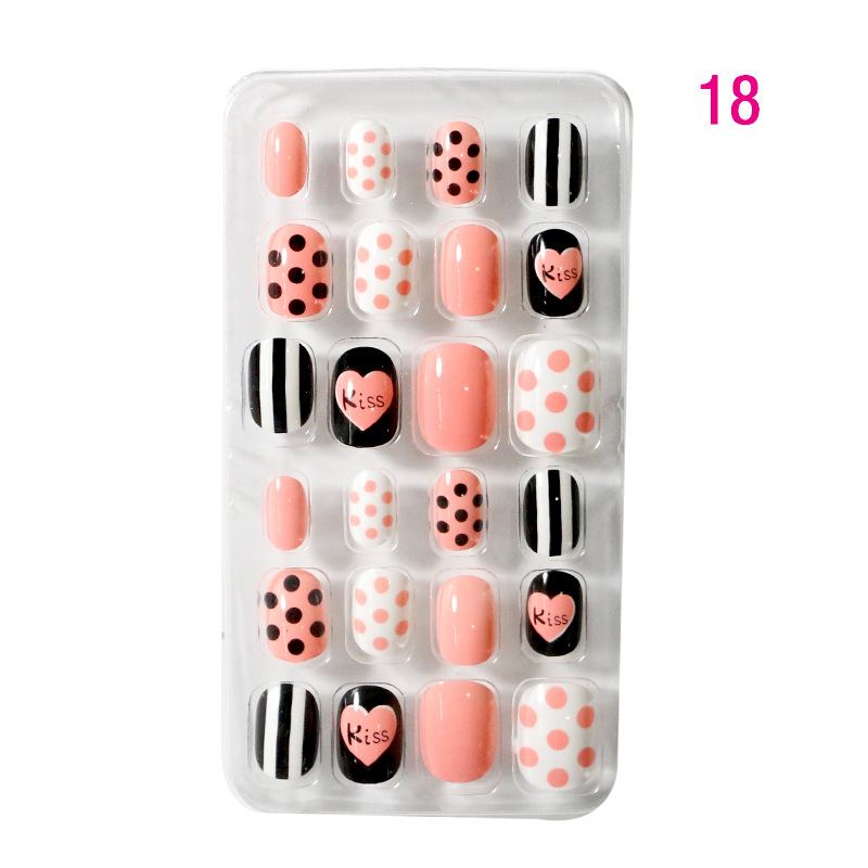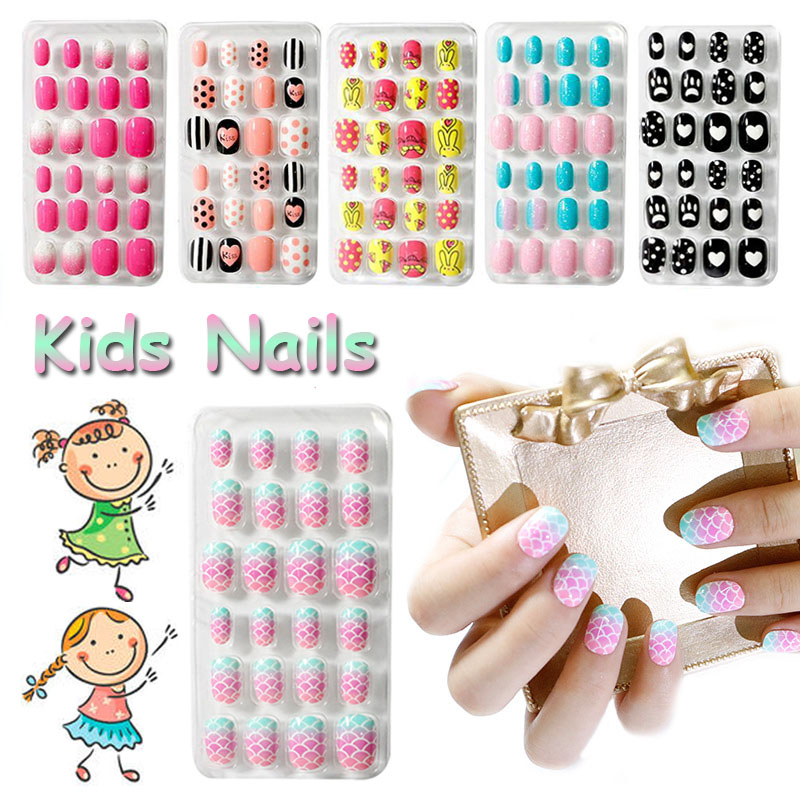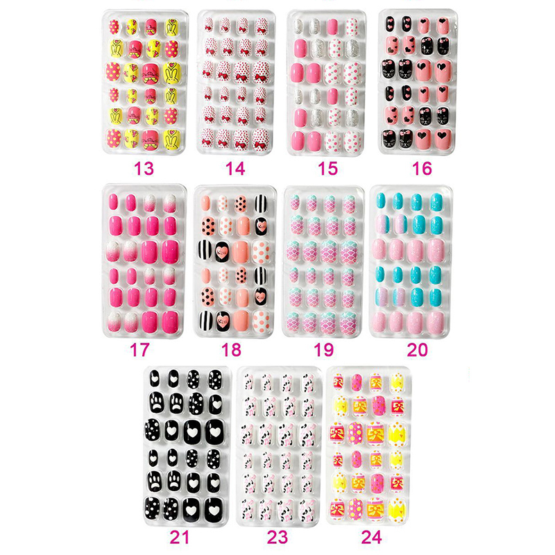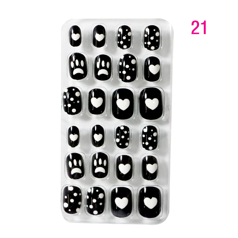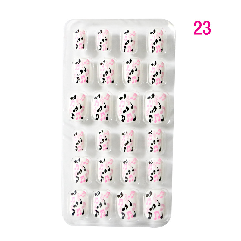 24Pcs/box Children Press On Fake Nails Kids Cartoon Patterns DIY Back-glued False Nails For Girls