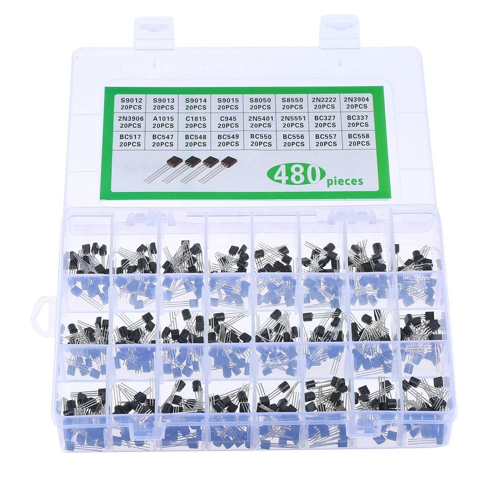 24Values 480PCS NPN PNP Transistor TO-92 Power General Purpose Transistors Assortment Kit 2N2222-BC558 (Standard)