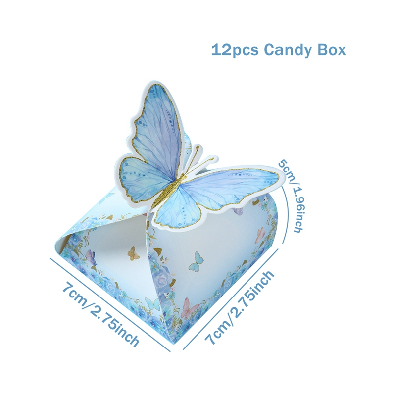 4/12/24pcs Butterfly Candy Boxes Goodies Bags Butterfly Gift Packaging Box for Kids Gift Happy Birthday Party Decorations Paper Gift Box