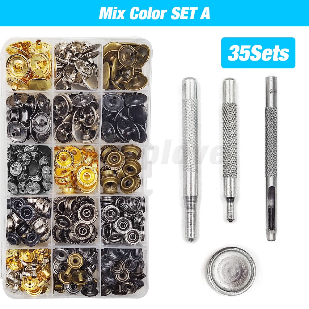 25 Sets 12.5/15/17/20mm Metal Press Stud Snap Button Popper Fastener With 4 Installation Tools Kit For Clothes Garment Bags Shoes Leathercraft