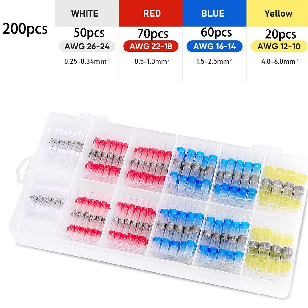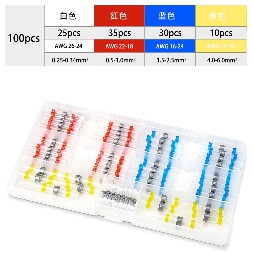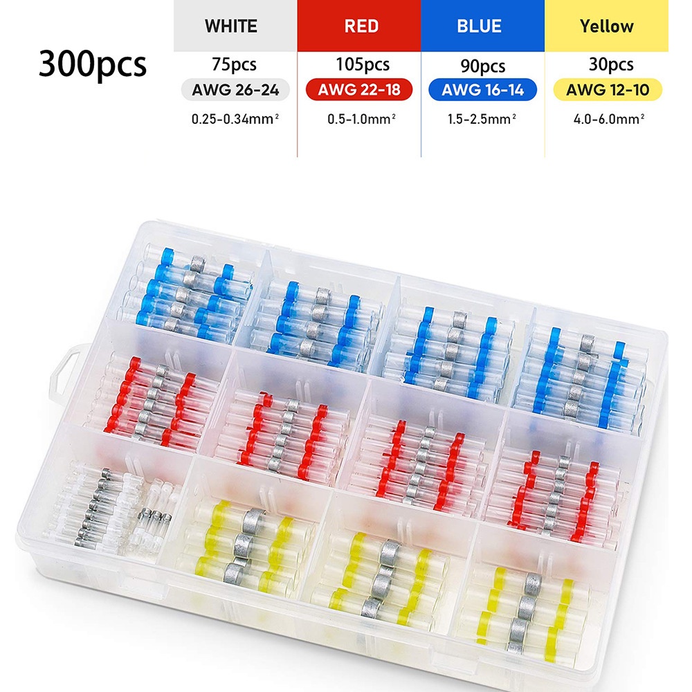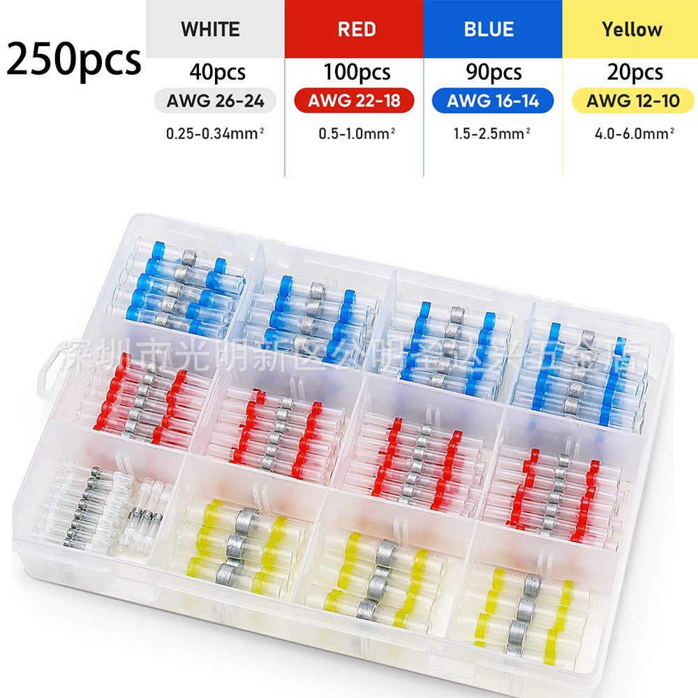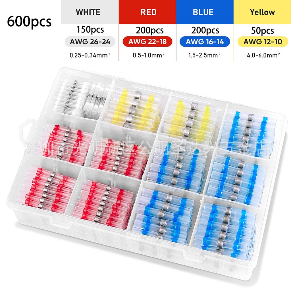250/400/600pcs Boxed Waterproof Solder Ring Heat Shrinkable Middle Tube Solder Terminal Combination Set Box