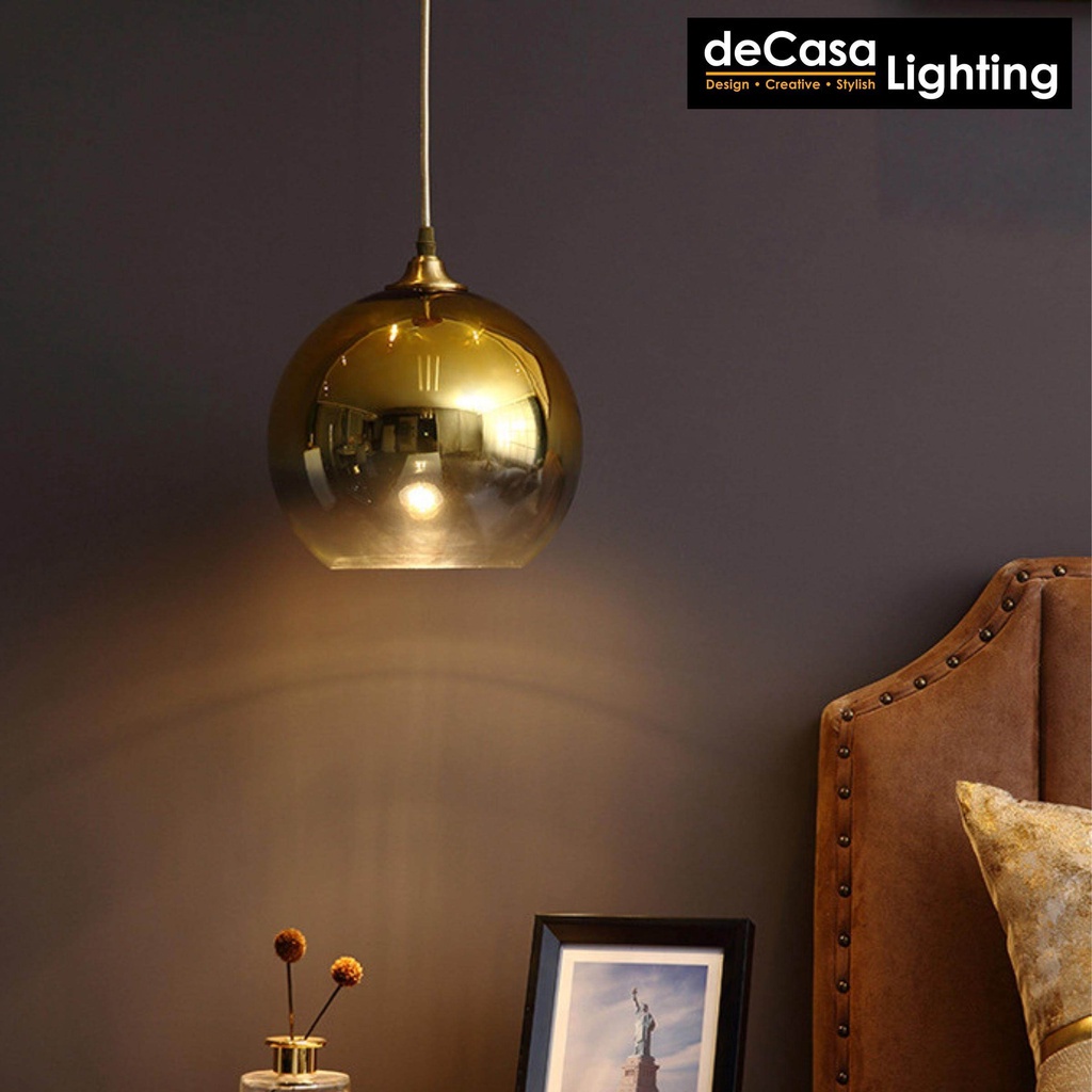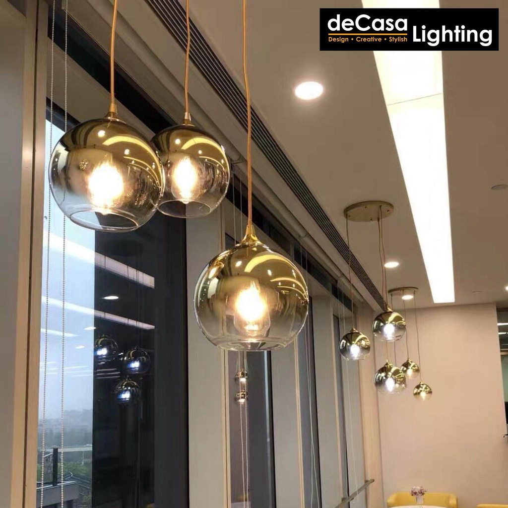 250MM Modern Gold Glass Pendant Lights Gold Gradient Clear Ball Designer Pendant Lamp Lampu Gantung Ruang Tamu (6305)