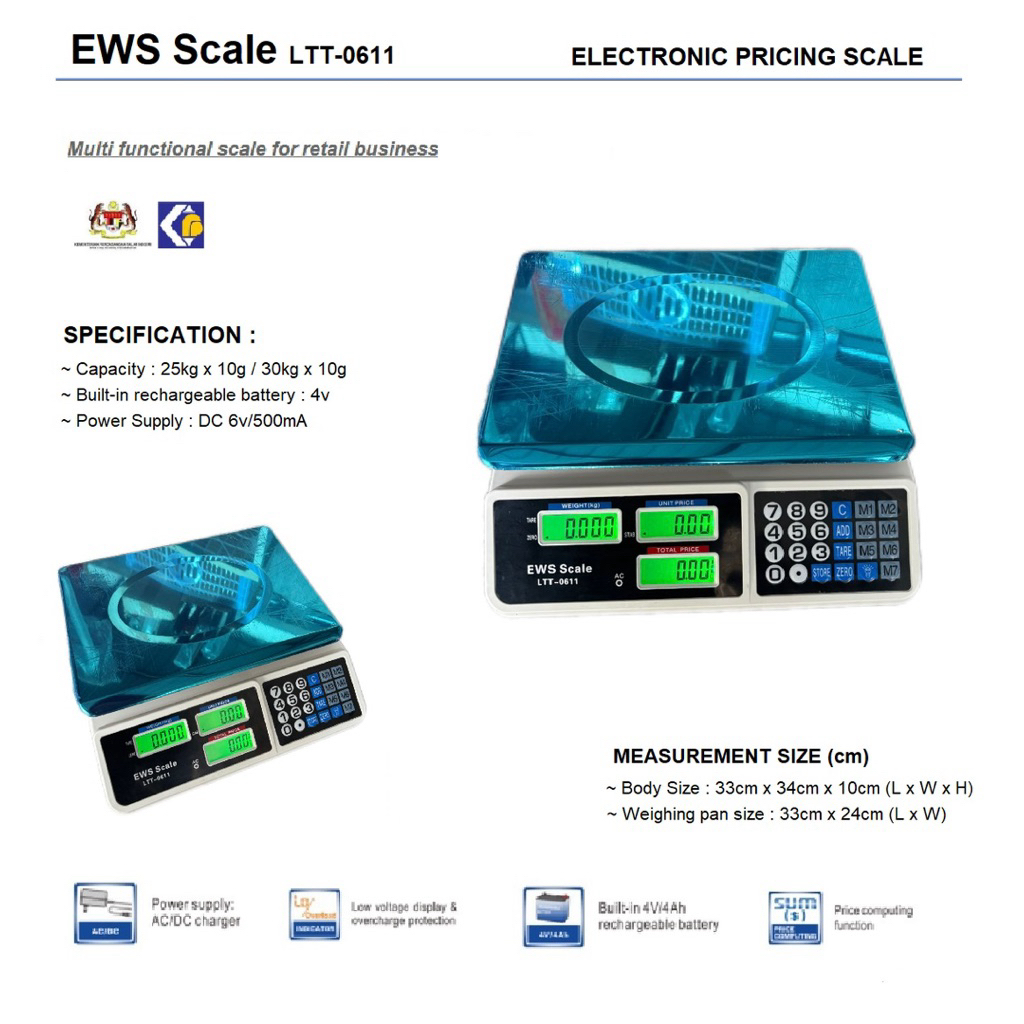 25kg / 30kg Electronic Digital Price Computing Rechargeable Supermarket Counting Scale Penimbang Harga Timbang