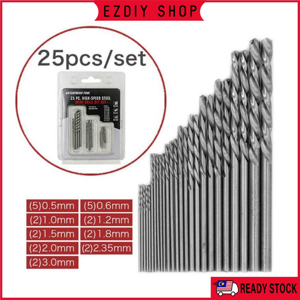 25pcs/Pack 0.5mm-3mm High Speed Steel Mini Micro Drill Bits Set