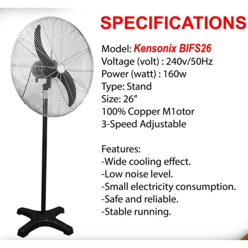 26" Inches Heavy Duty Industrial Stand Fan / wall fan Durable (6 Months Warranty) Kipas Angin Kuat industrial fan 26