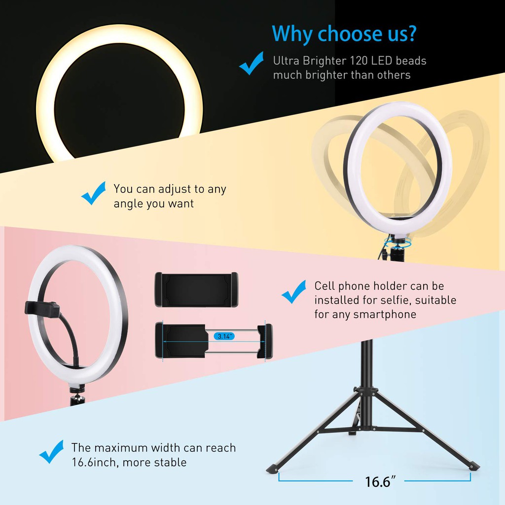26cm 10inch Self-timer Ring Light for Mobile Phone Shooting And Live Streaming Fill Light With 3 Mode LIght Effect