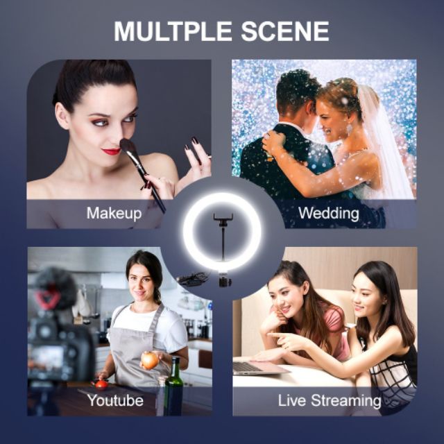 26cm LED Ring Light with 2M Tripod Stand Youtuber FB Live Tik Tok Shooting Lampu Bulat