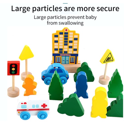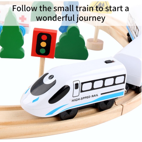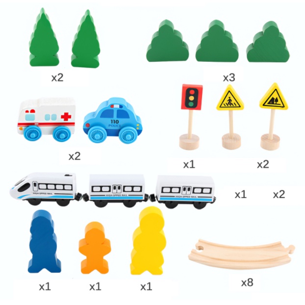 26pcs Wooden Electric Train Set | Railway Track Traffic Toy For Kid Kids Building Blocks Trains Track Toy Cityscape