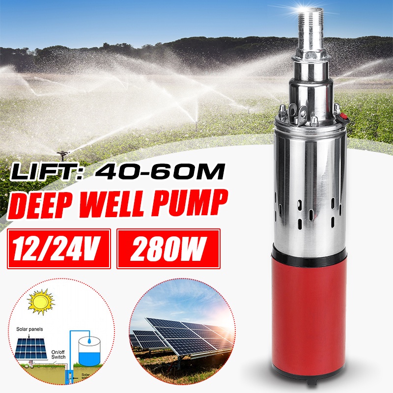280W 60m 12V/24V Solar Water Pump High Lift Deep Well Pump DC Screw Submersible Pump Agricultural Irrigation Garden Home