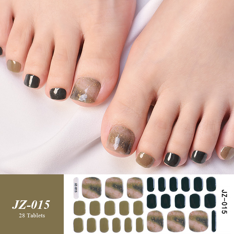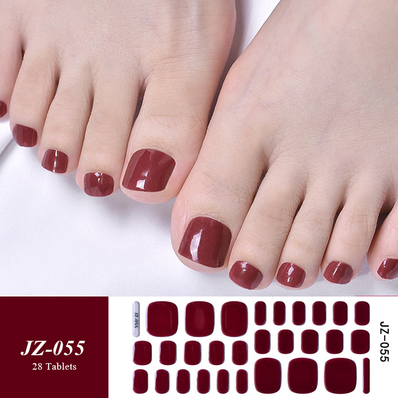 28Tips/Sheet Dark Red Semi Cured Gel Nail Toe Strips Patch UV LED Press On Full Cover Gel Nail Sticker Decals