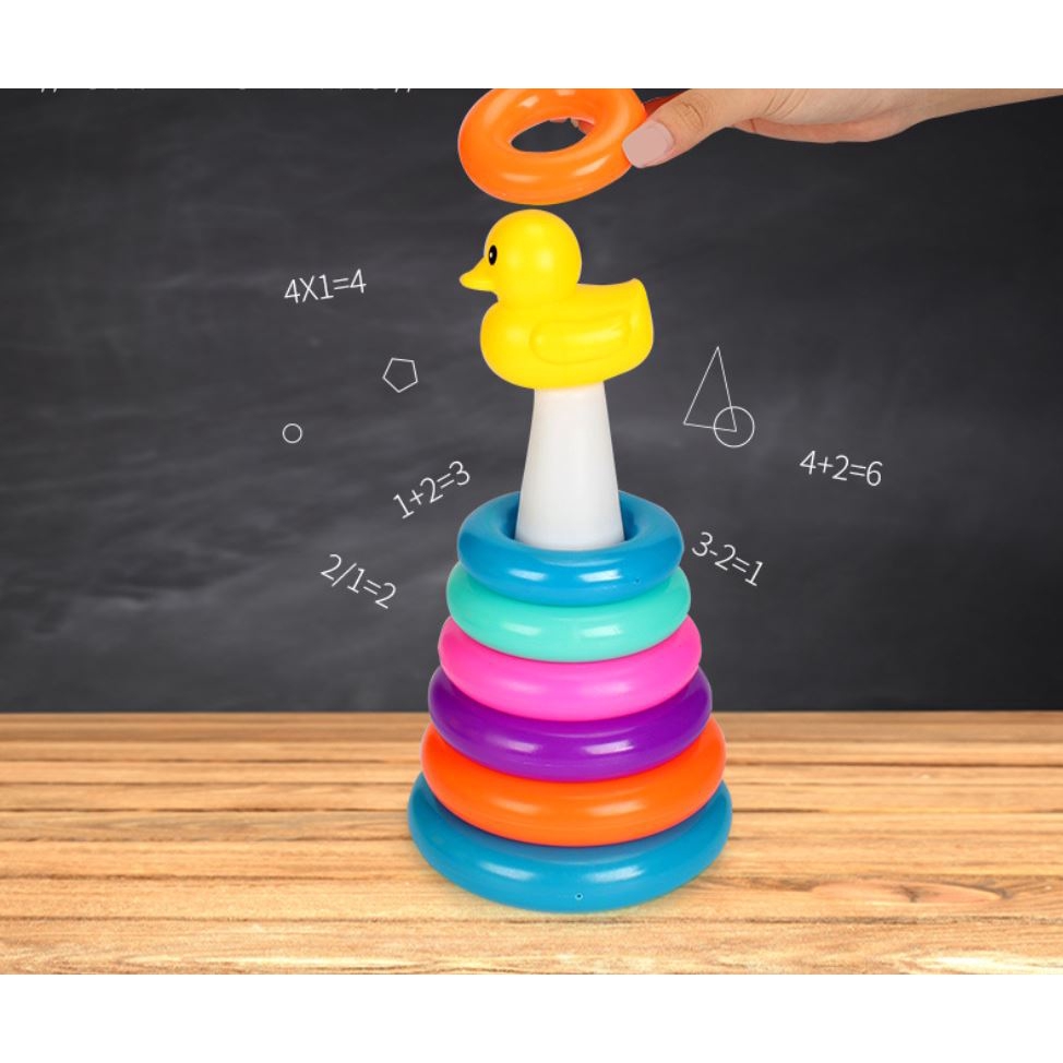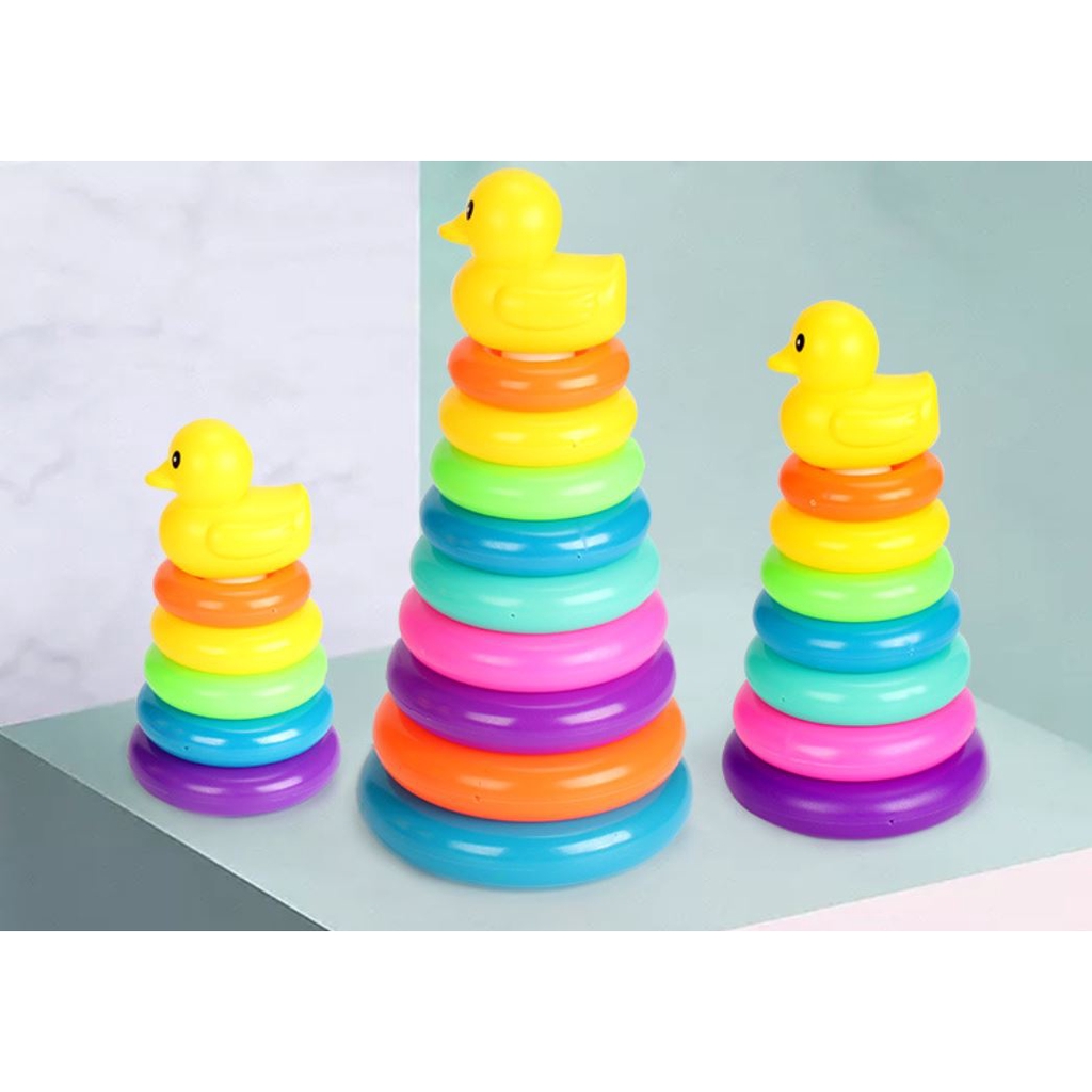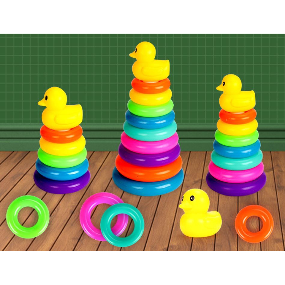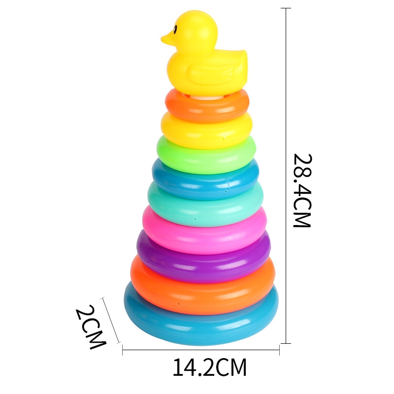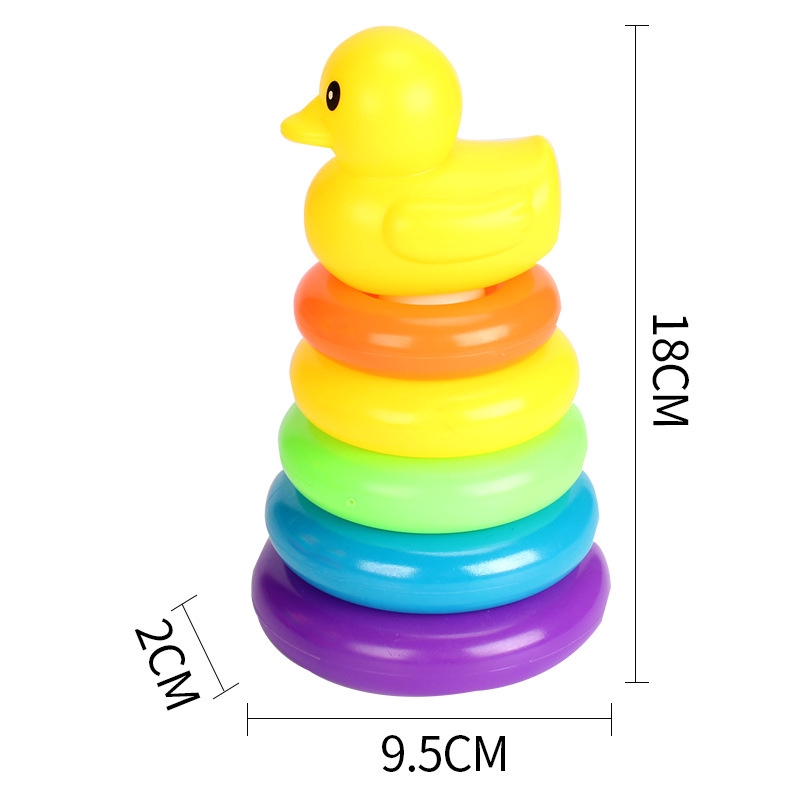 28cm Baby Kids yellow duck Stacking Stack Up Educational Toy Rainbow Ring Tower Toys