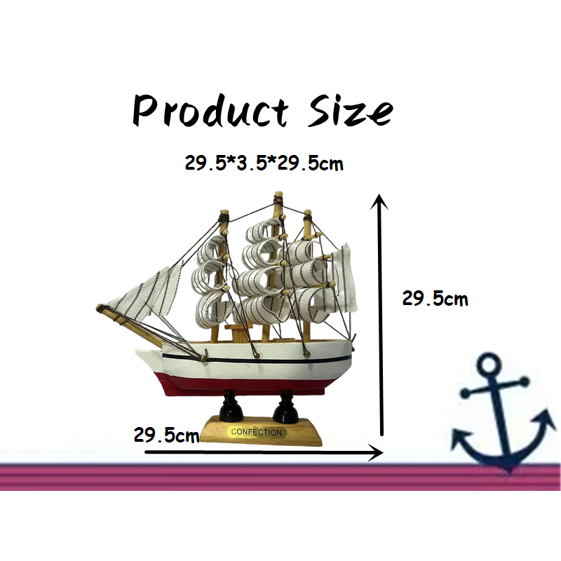 29.5cm Handmade Wooden Ship Model Strip Coastal Table Decoration Miniature Sailing Boat Model Kapal Hiasan Kapal Kayu