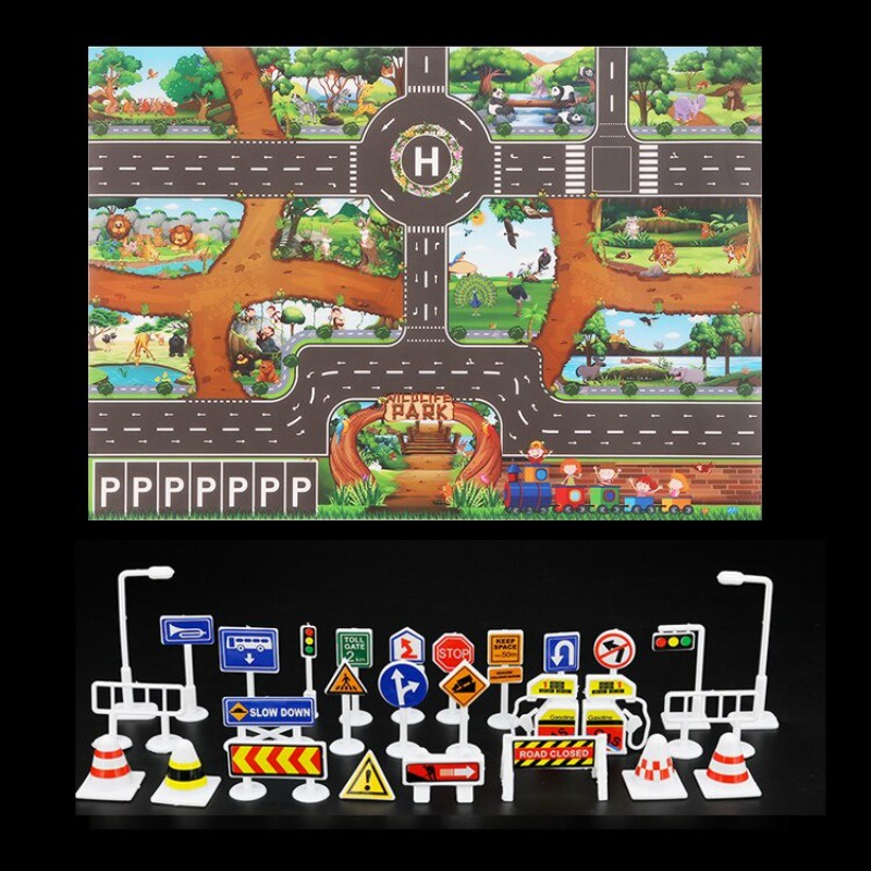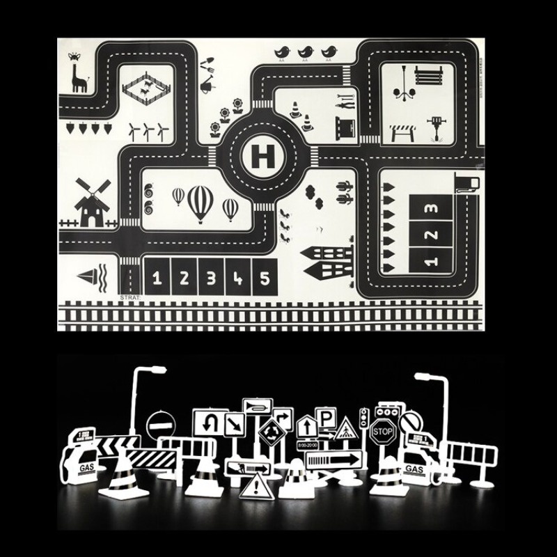 29Pcs Baby Play Mat Road Map for Kids Cartoon Plastic Thin Traffic Rug Little Boys Girls Toys Playmat Babies Playing Educational Mat