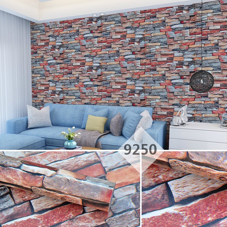 2D WALLPAPER SELF ADHESIVE PVC STICKER WATER PROOF BRICK DESIGN | PELEKAT DINDING RUANG TAMU CORAK BATU