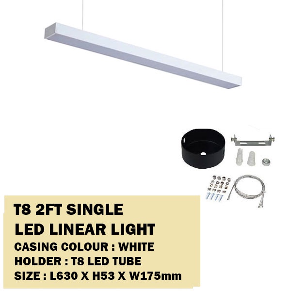 2FT LED T8 Linear Light Fitting / Office Linear Pendant Light -Single / Double / Triple