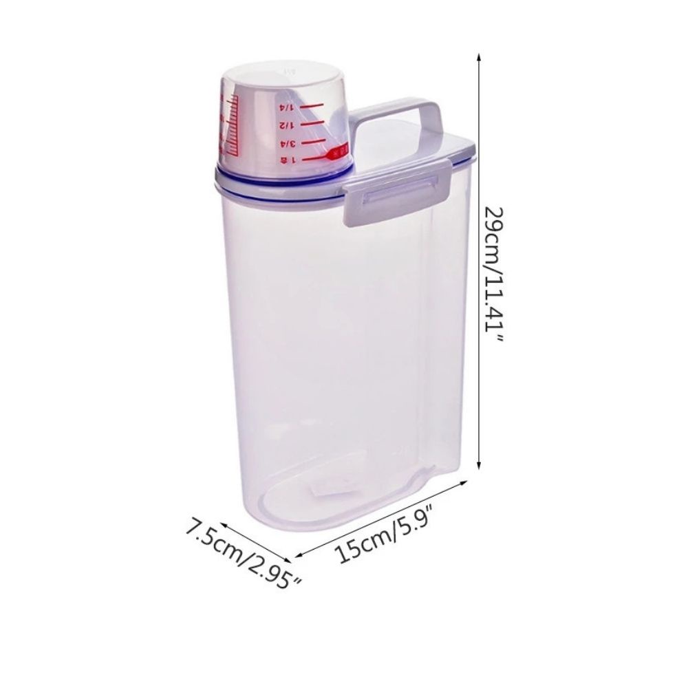 2L Food Container Dispenser Washing Powder Plastic Storage Box Cereal Grain Rice Kitchen Container with Measuring Cup