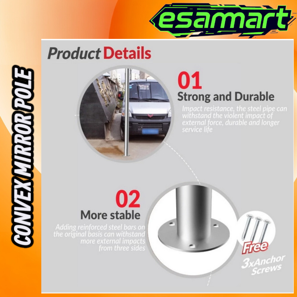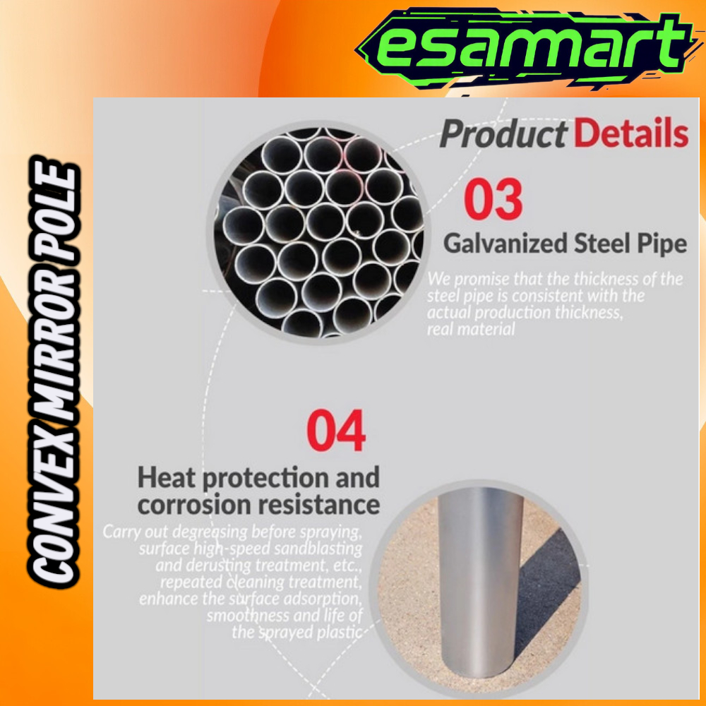 2M/2.5M Pole for Convex Mirror 45-100CM Outdoor Galvanized Steel Pipe Pole Stand Tiang Cermin Cembung Jalan Raya
