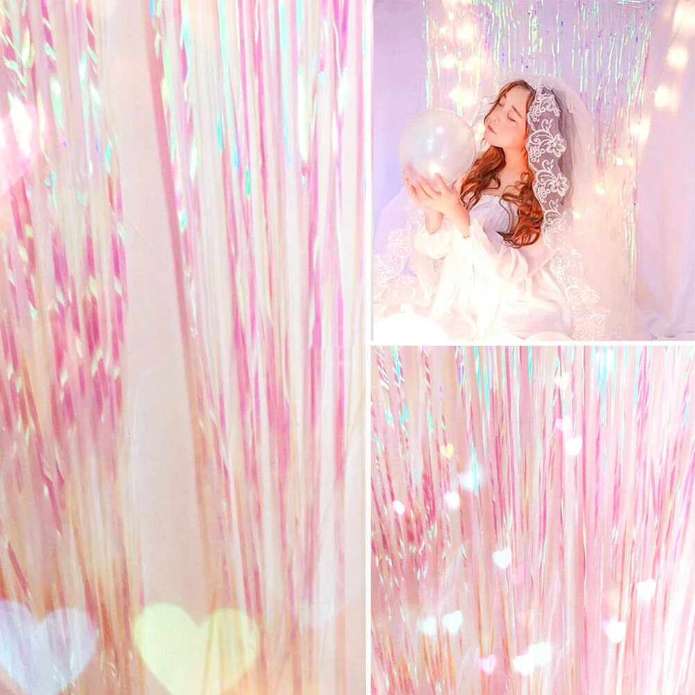 2M Party Backdrop Rainbow Curtains Rain Sequin Tinsel Foil Curtain Photo Booth Wedding Decoration Birthday Party Supplies