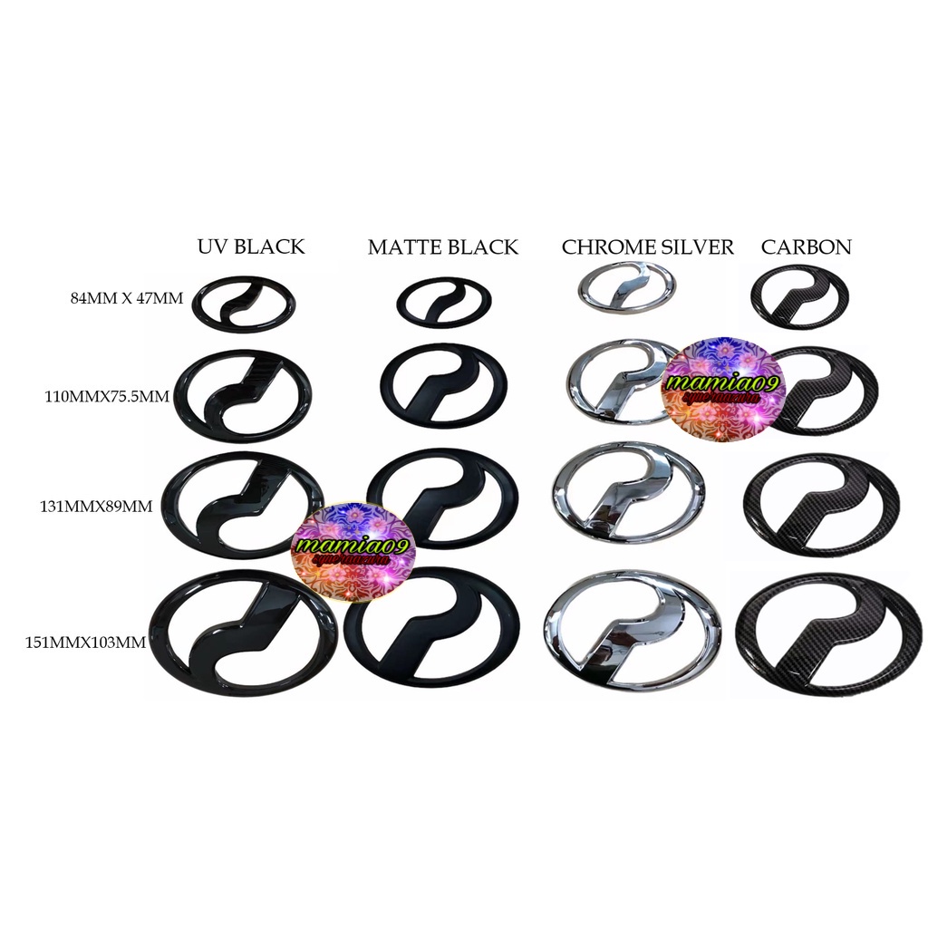 2PCS EMBLEM LOGO HITAM UNTUK PERODUA ARUZ MYVI LAGI BEST / ICON / 2018 ALZA BEZZA AXIA KENARI BLACK CHROME LOGO EMBLEM
