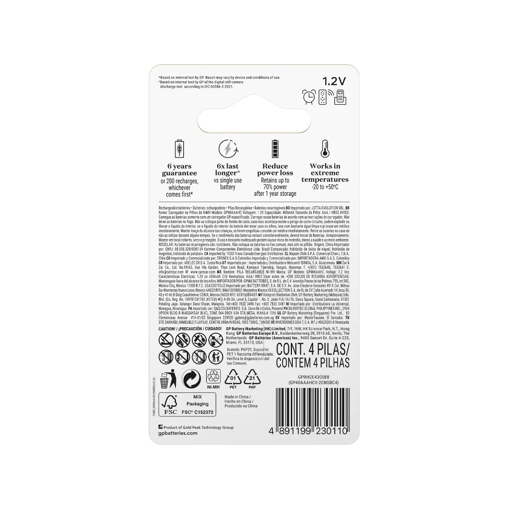 4PCS GP Recharge AAA 400mAh / 800mAh Rechargeable Battery - GP40AAAHCV / GP80AAAHCLV