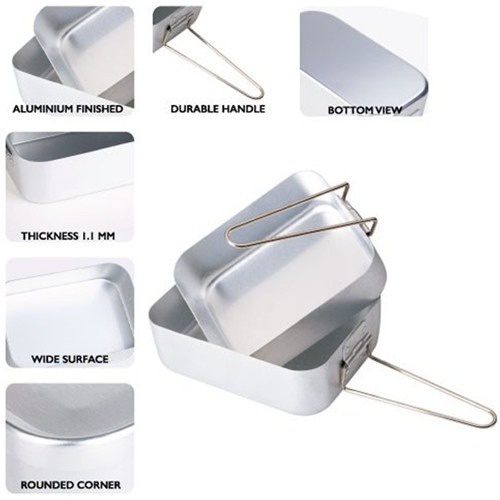 2Pcs Camping Aluminum Mess Tin Foldable Handle Light-Weight Portable Cookware Set