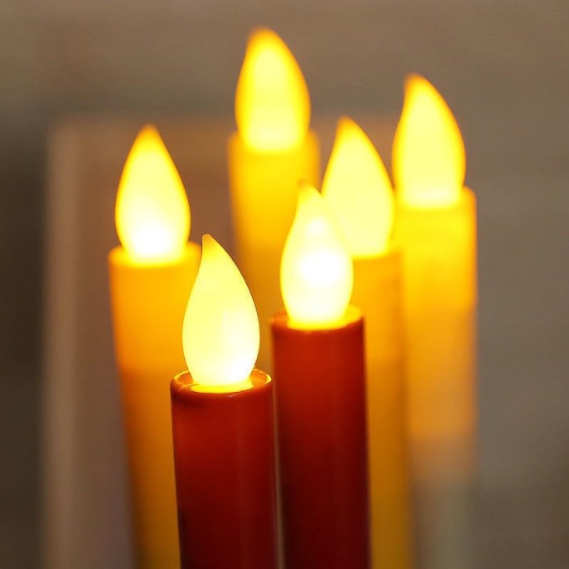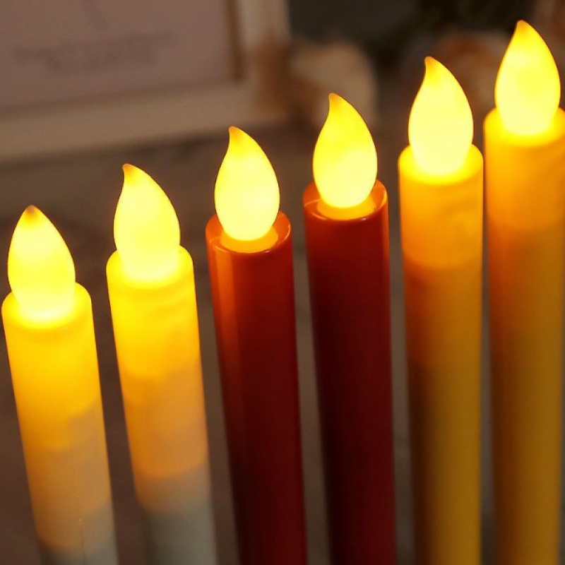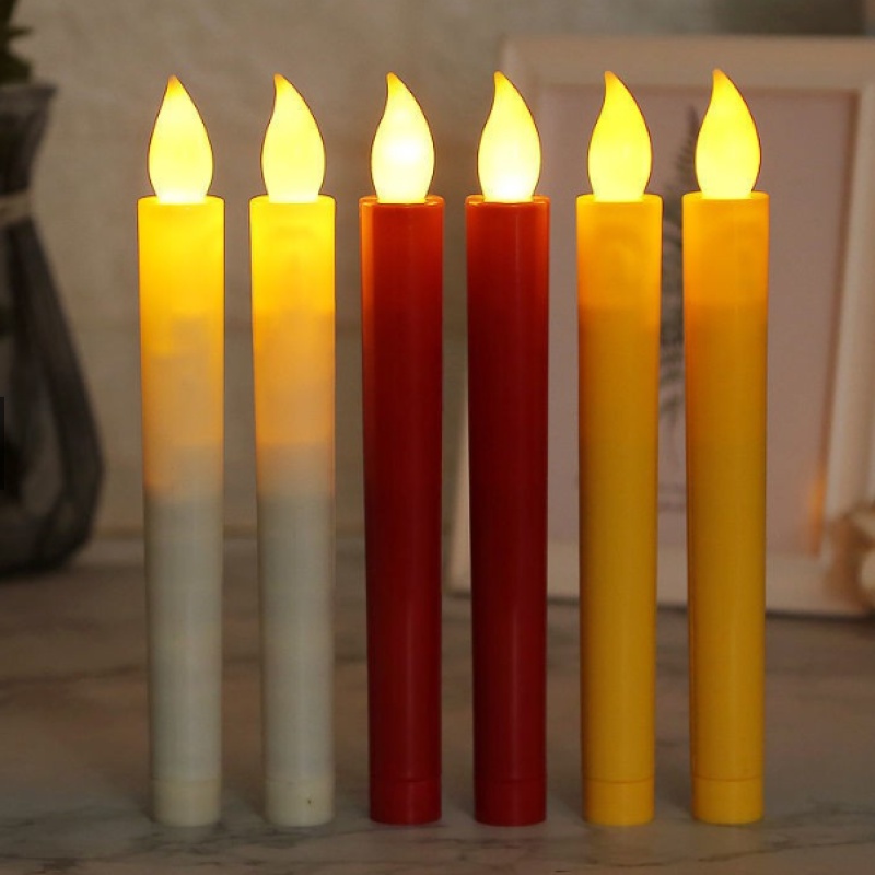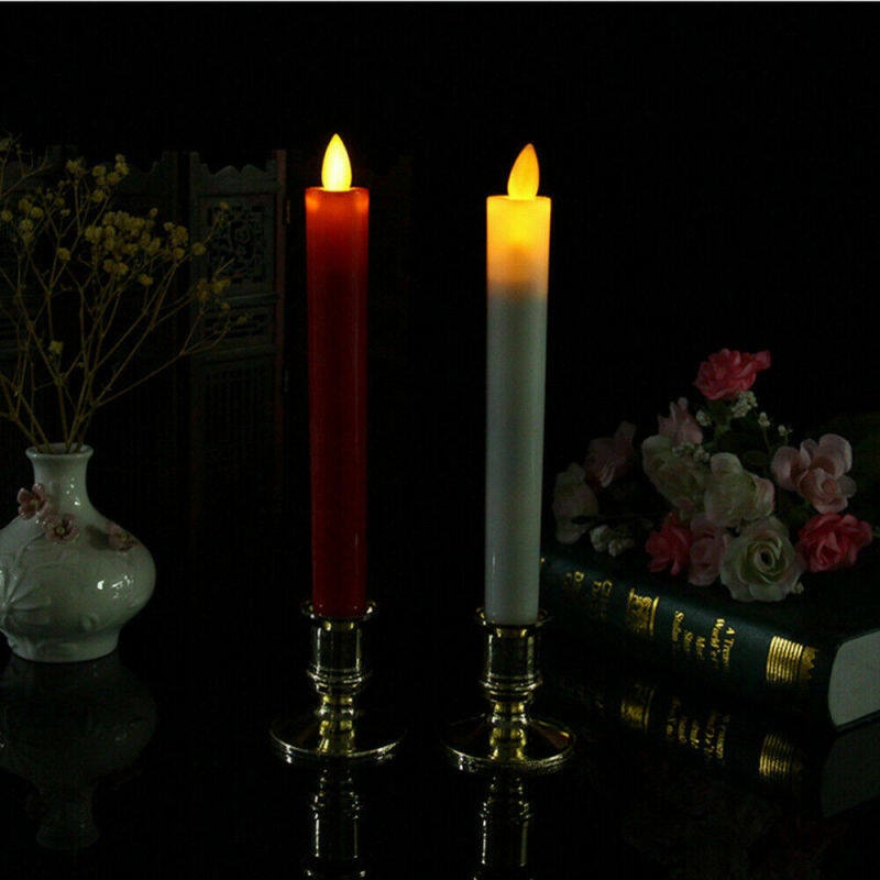 2Pcs Long Flameless Electronic Candle With Candlestick Holder/ Romantic Flameless Flickering Smokeless Decorative Candle Lamp / Battery Operated LED Tea Light / Electronic Fake Candle For Home Christmas Festival Party Decoration