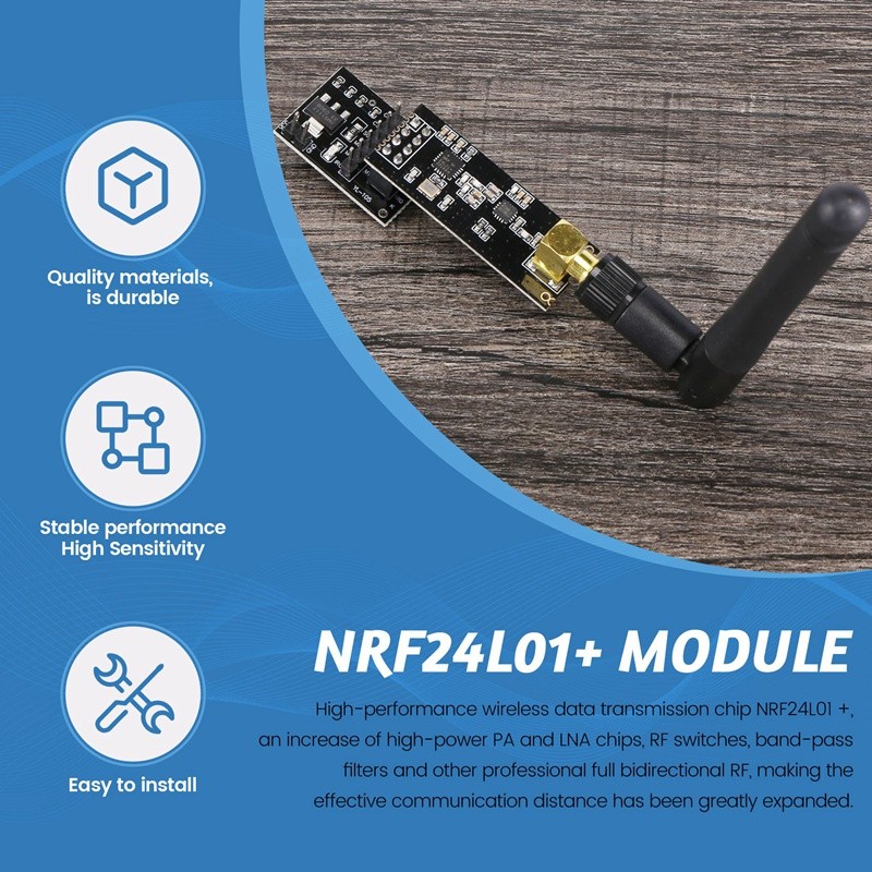 2Pcs NRF24L01+PA+LNA RF Transceiver Module with SMA Antenna 2.4 GHz 1100M + NRF24L01 Wireless Module for Arduino