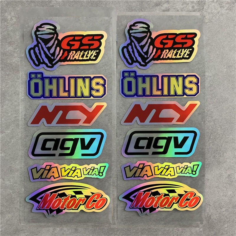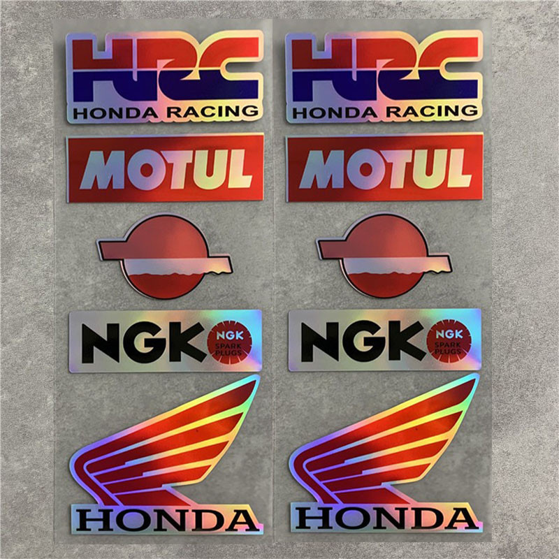 2Set / Pack Rainbow Laser Vinyl Japanese Style Motorcycle Stickers KTM Racing Helmet Car AGV Logo Sticker For Honda Yamaha Kawasaki Suzuki